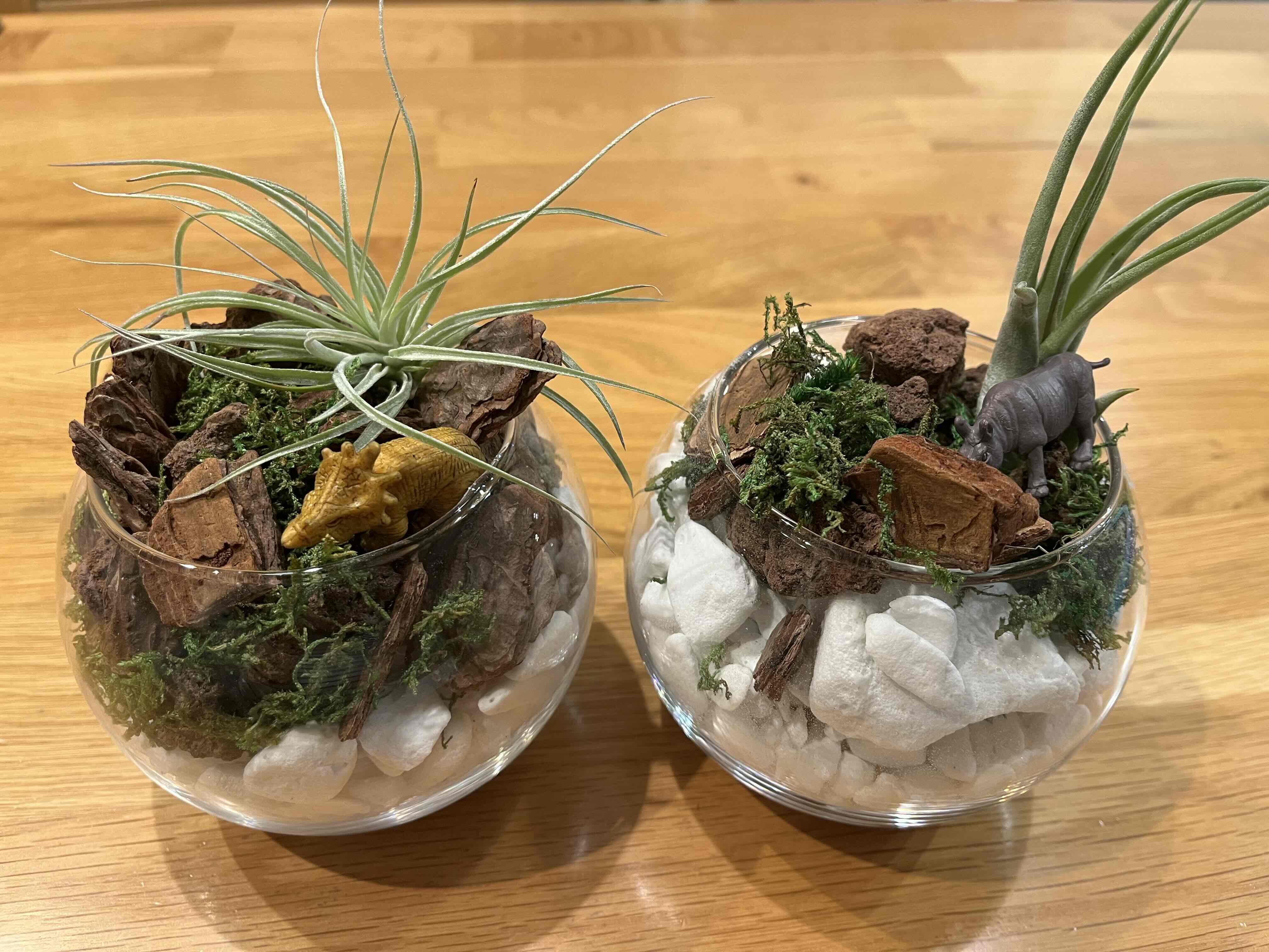 娘が恐竜(左)、息子がサイ(右)を乗せました!