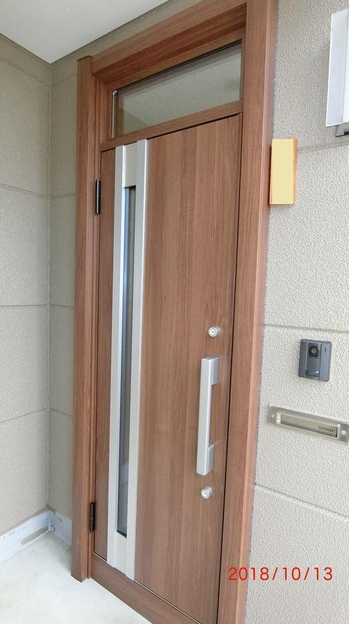 1dayリフォームで、かっこよくて、あたたかい最新のドアに代わりました!! 取っ手も使い勝手のよいタイプに。