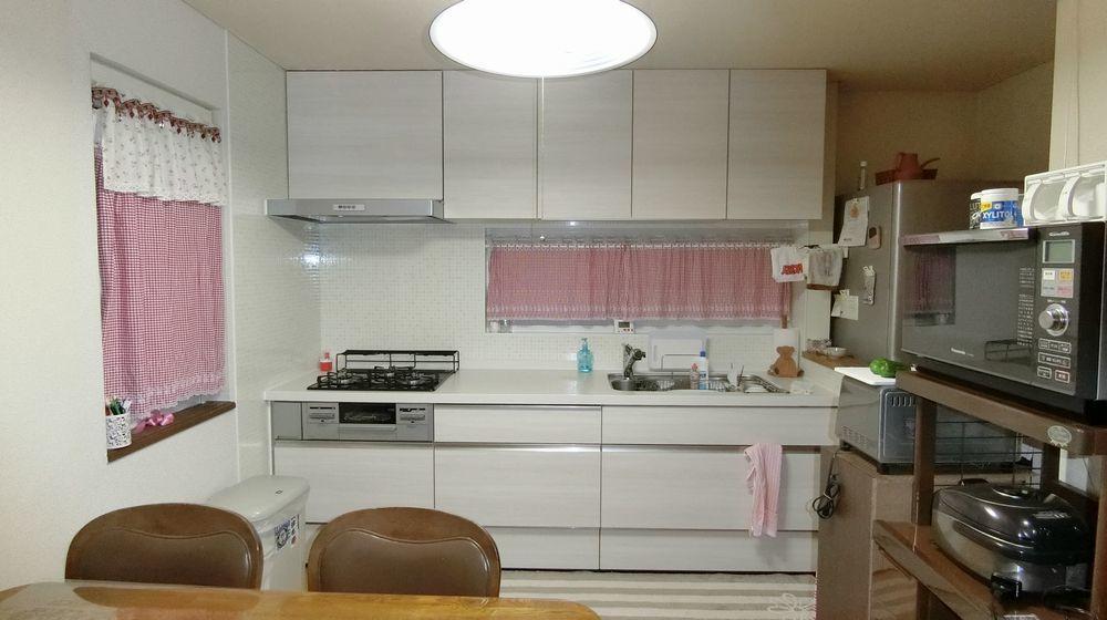 天板がステンレスから人口大理石になりキッチンが明るくなりました!