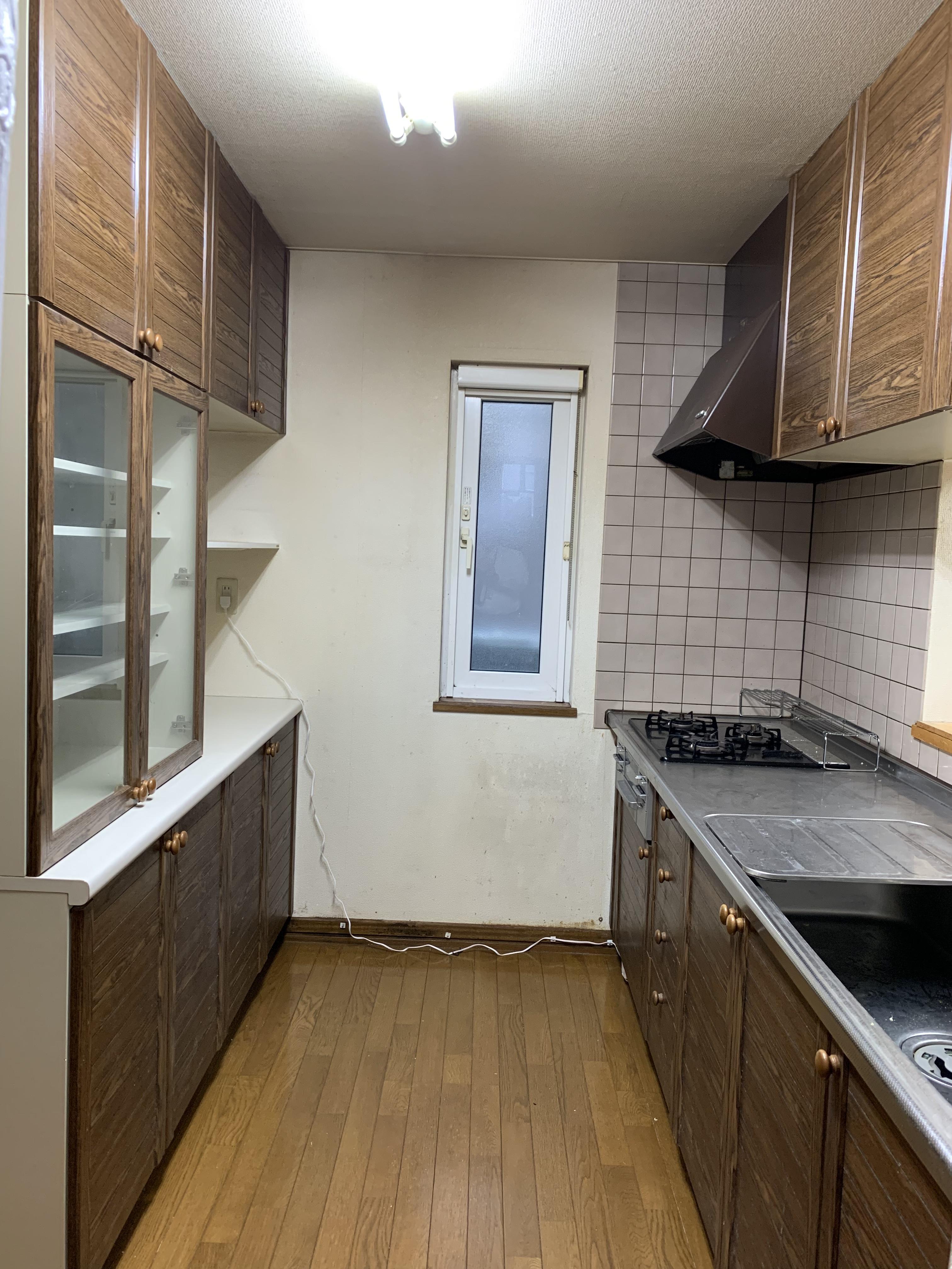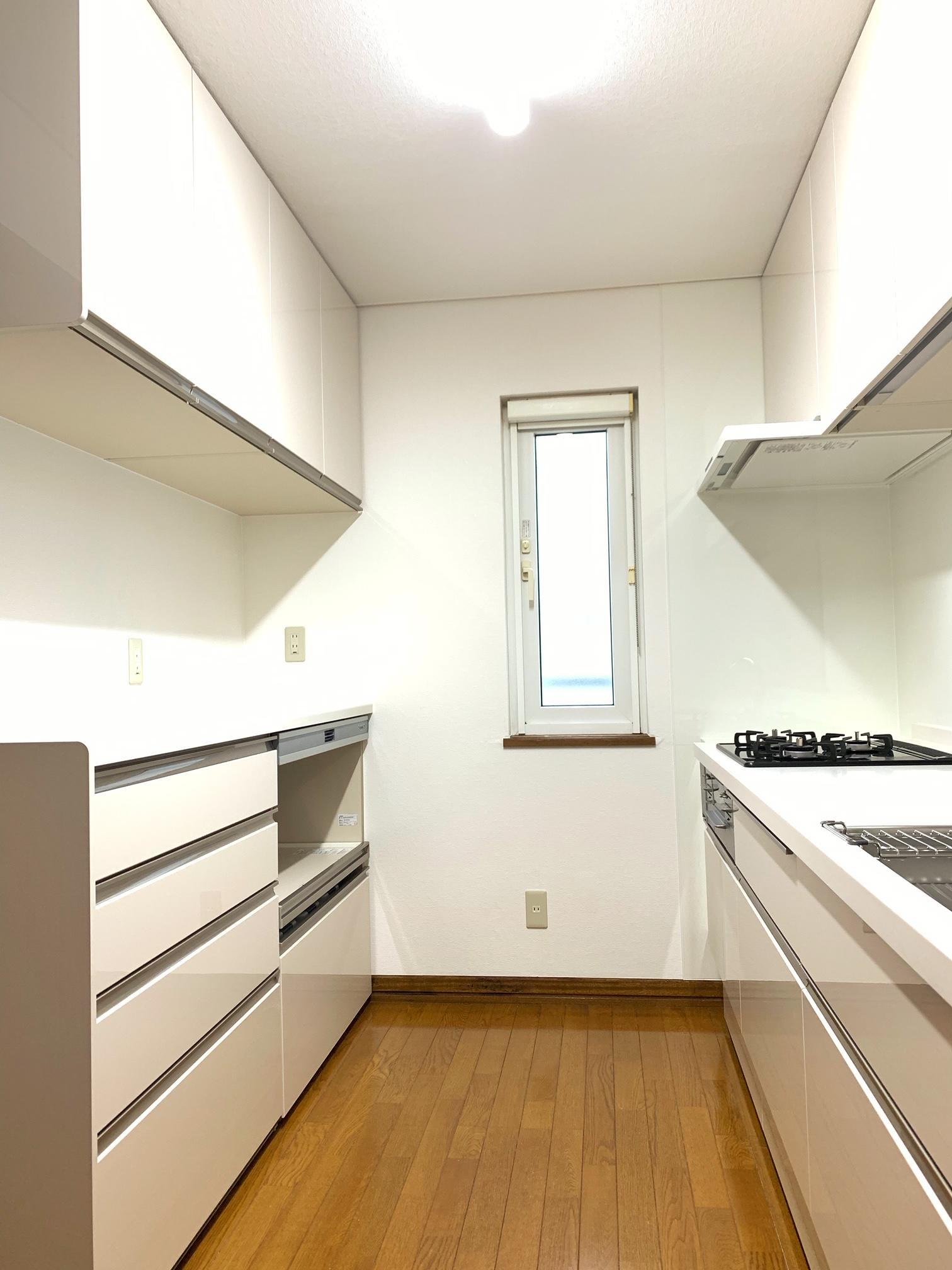 シンク上のシルバー部分は、電動昇降機能付きの食器乾燥機です。実は、キッチンと食器乾燥機はまったく別のメーカーのものです。お客様自身のアイデアで、ハイブリッドキッチンが誕生しました。思いのほかキレイに納まり良かったです。また、シンク横には壁があったのですが、圧迫感があることや、作業性が悪いことから壁は取り除きました。 もちろん設計士が問題ないことを確認した上で工事しております。