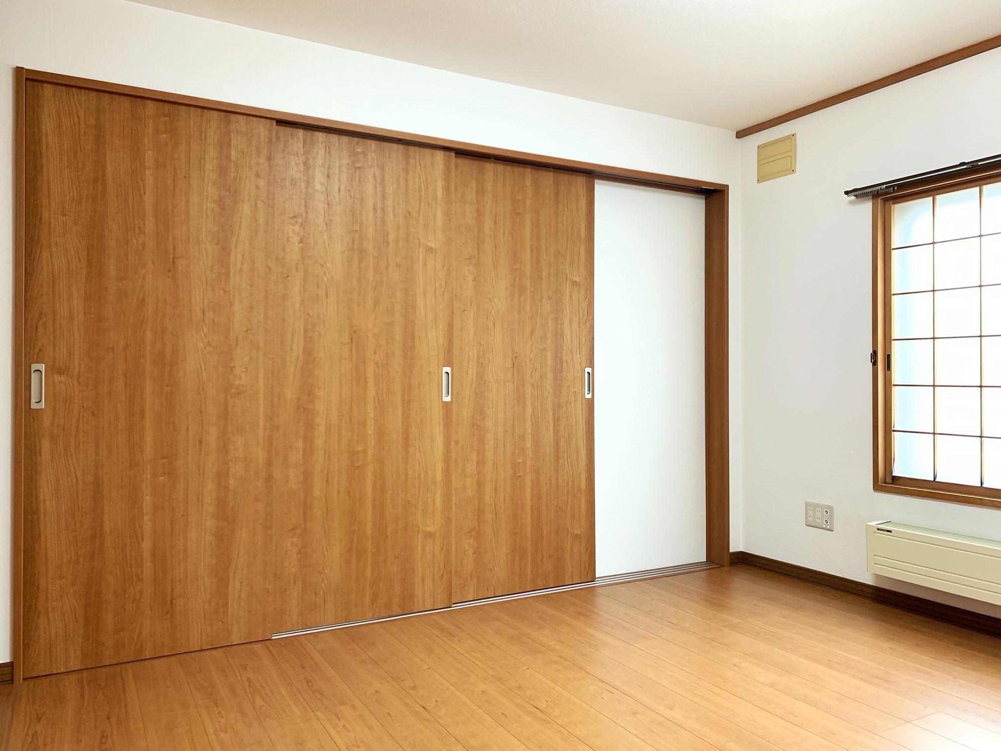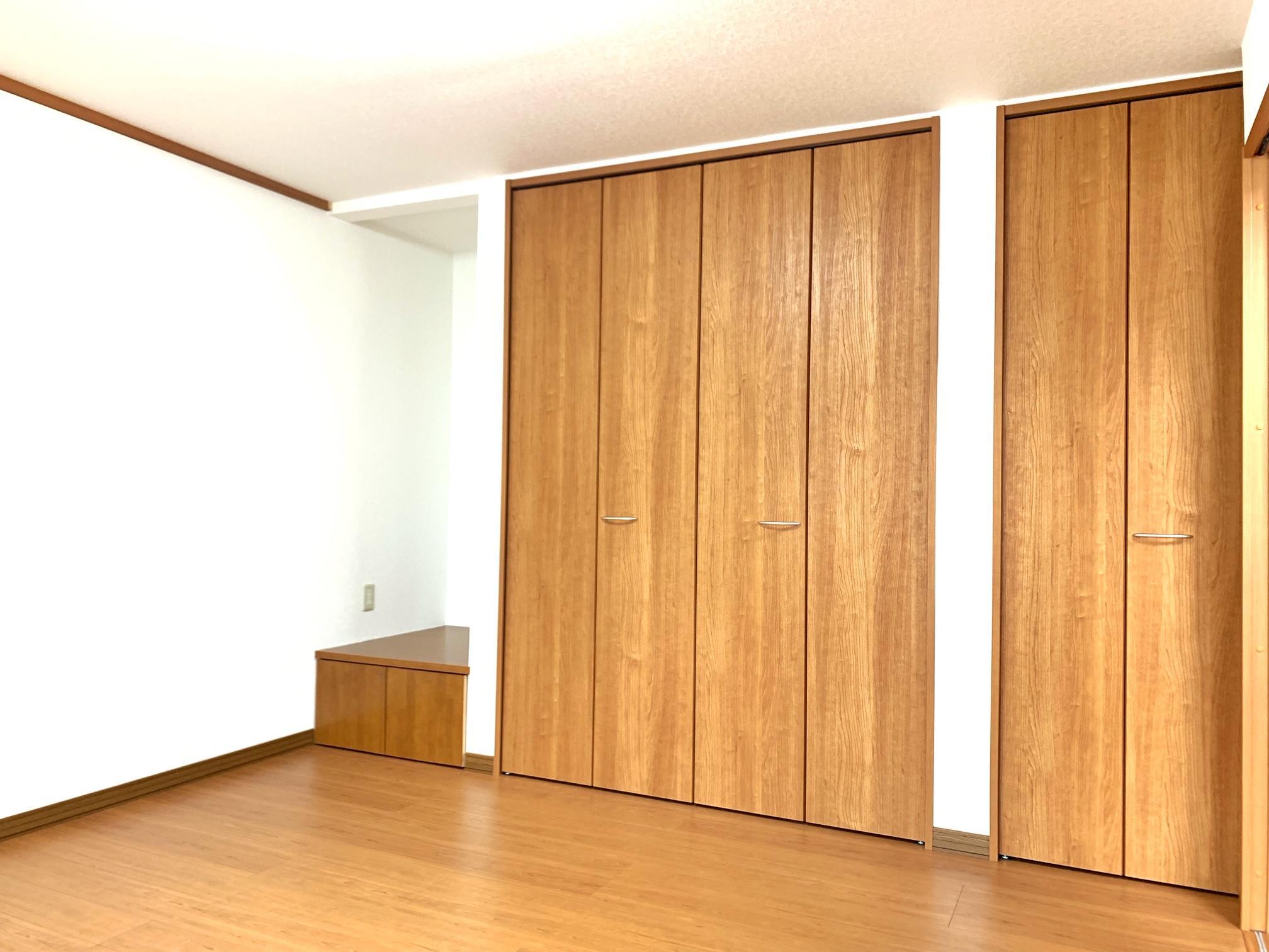 左側の仏間は下に地袋を設け、中腰にならずにお仏壇にお供えができるようになりました。中央の押入れはクローゼットにし、その中をT字に区切り左側には可動棚、右側にはハンガーパイプを設けました。床のレールもないのでつまずく心配もございません。右側のクローゼット部分は元々ドアがあり通路でした。