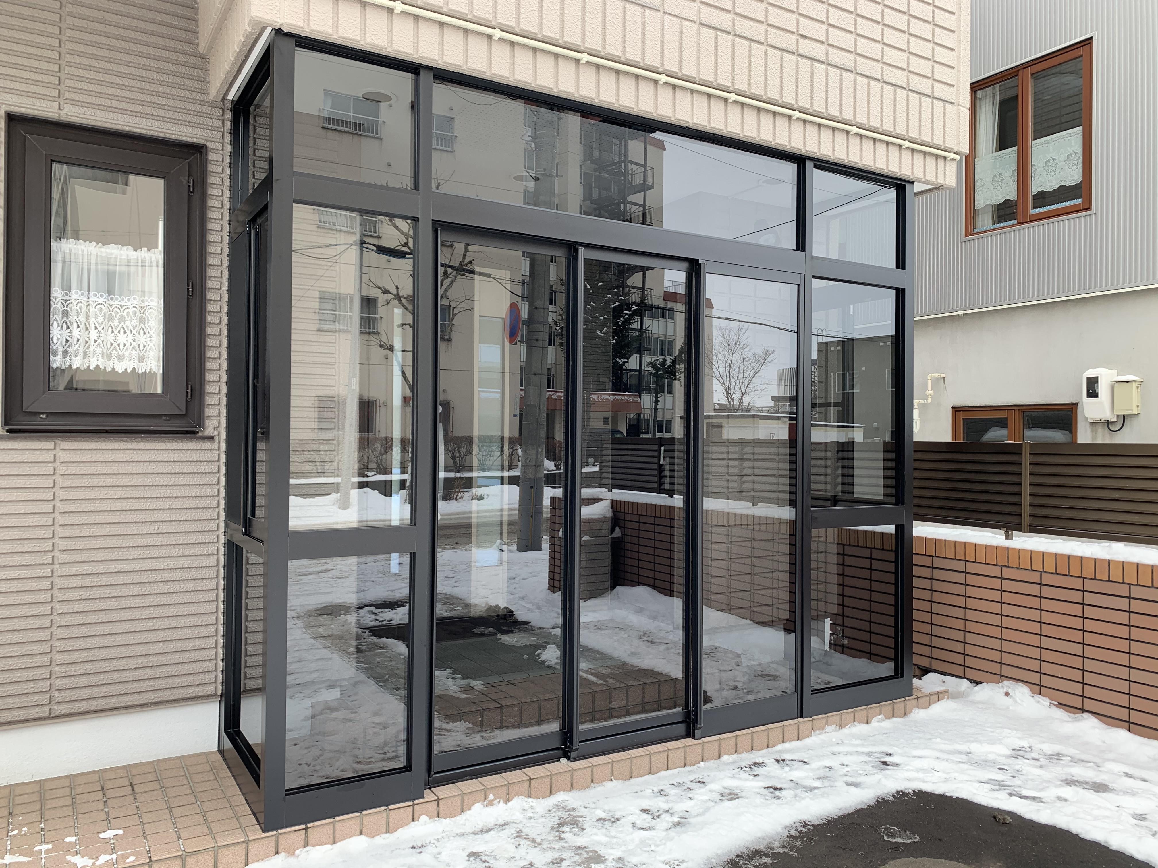 札幌市北区 A様邸 玄関フード(風除室)工事 以前から気になってはいたが、、付けてみるととても暖かい!もっと早く付ければよかったと、お客様にもお喜び頂いております。 光熱費も下がって、すぐれものです。
