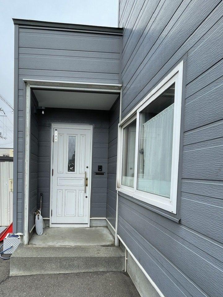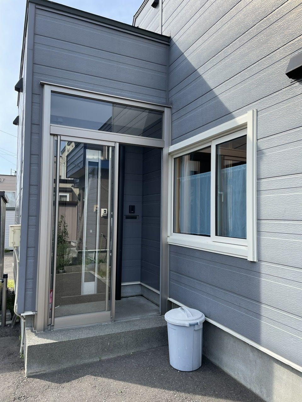 レール付きの玄関フードのレール部分に雪がたまり、開け閉めに使いにくさを感じておられ交換となりました。新しい玄関フードは上吊タイプで下にレールがないタイプ! これで積雪に悩まされることもなくなります。また、引違戸の為左右どちらからでも出入りができるので用途によって使い分けができます。同時に玄関ドアや窓も新しくして玄関まわりがリフレッシュしました!!