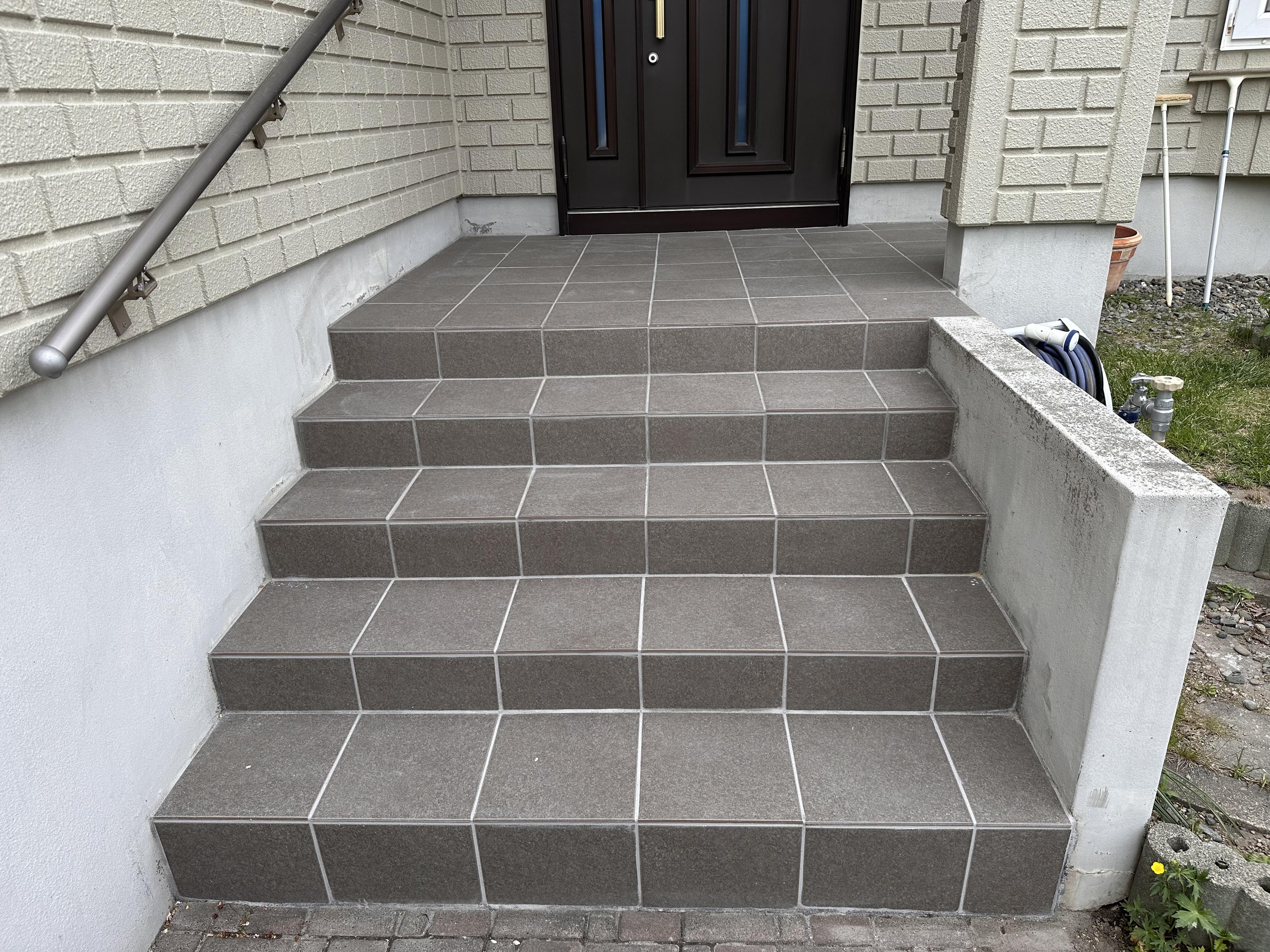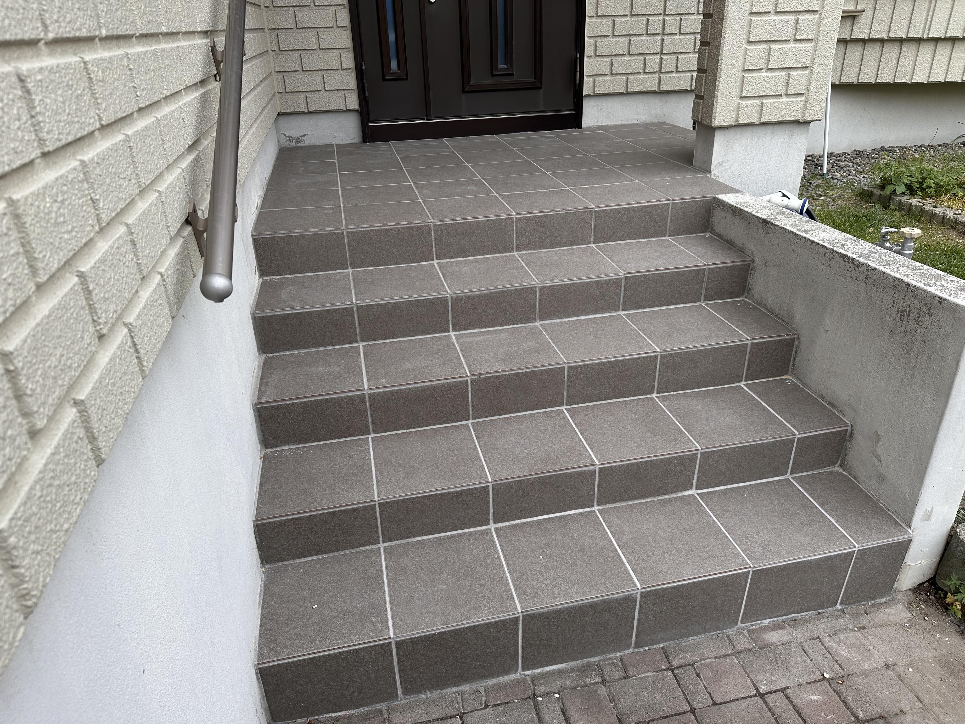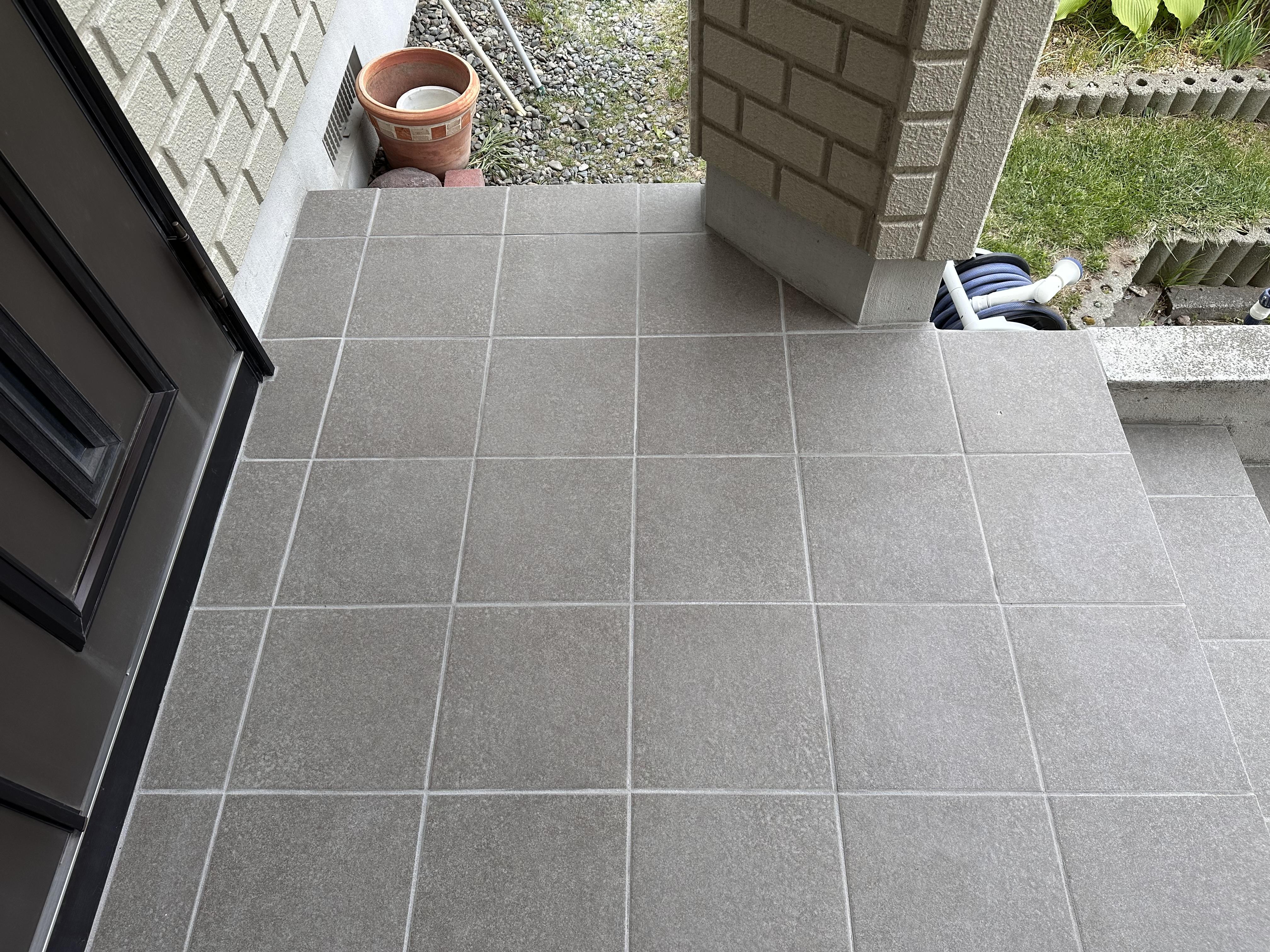 100角タイルから300角タイルへ種類を変え、 目地を減らすことで、お手入れが楽になりました。