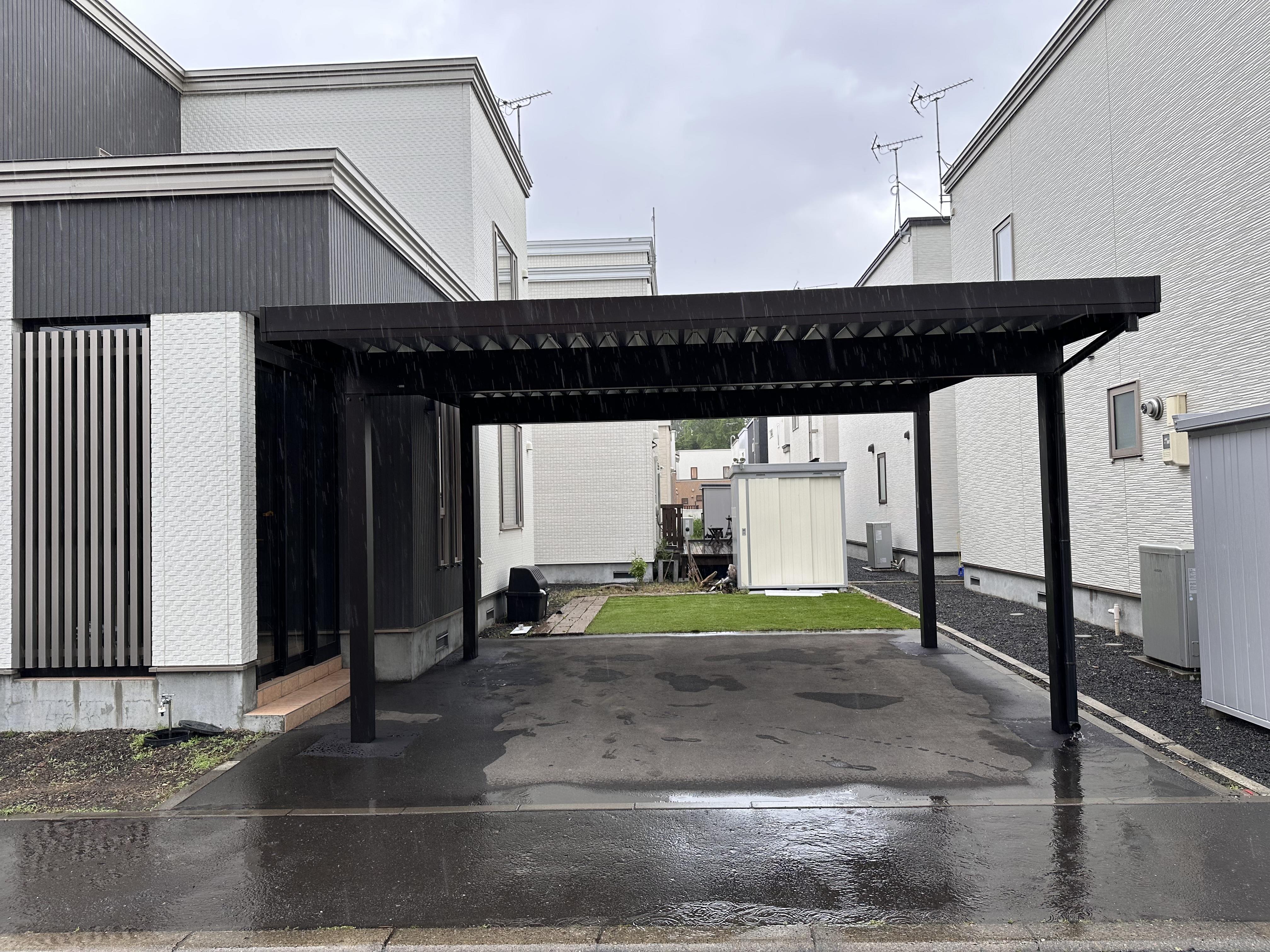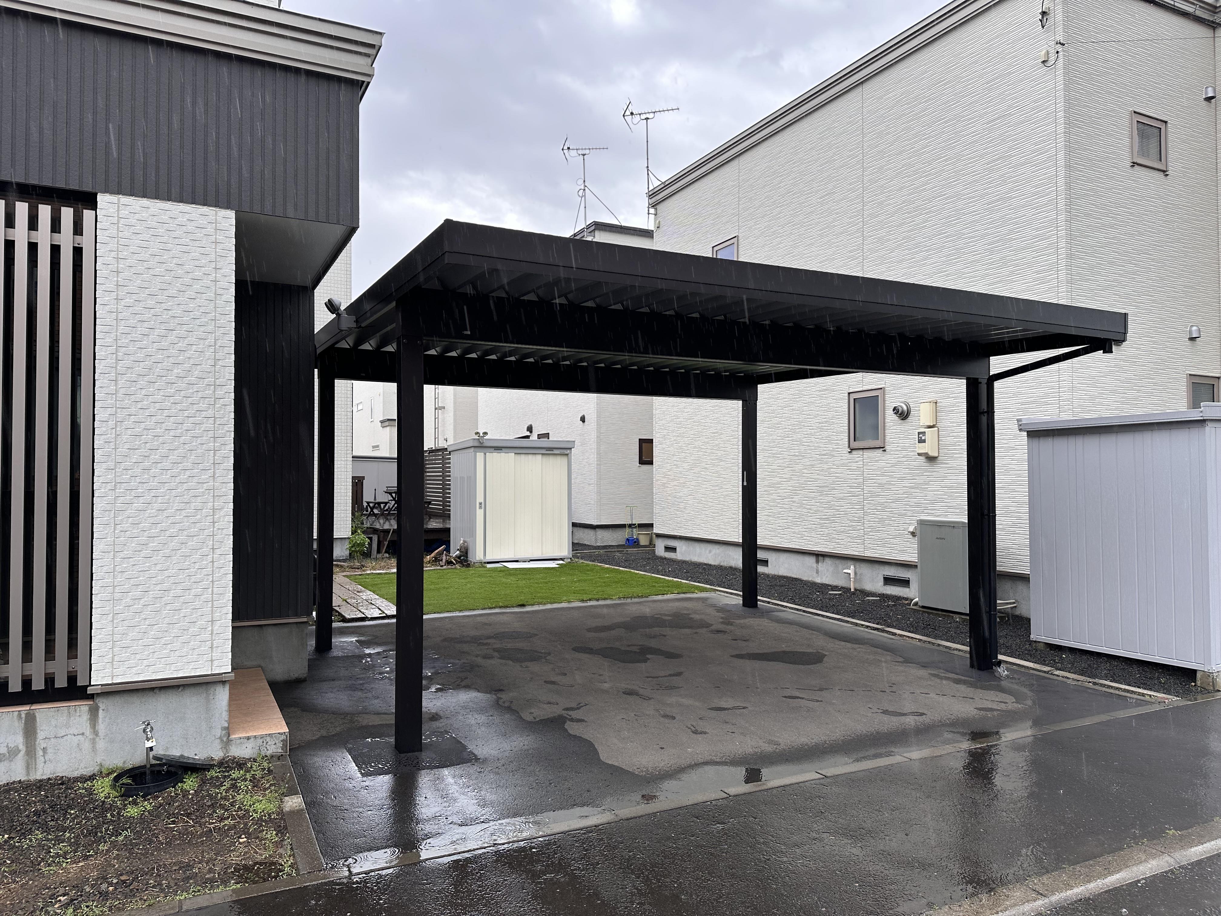 雨風や雪、紫外線などから車を守ってくれるほか、近年よく話題となる黄砂による汚れなども防ぐことができます。 玄関の間口からも近く、雨や雪にあたることなく出入りが可能となりました。