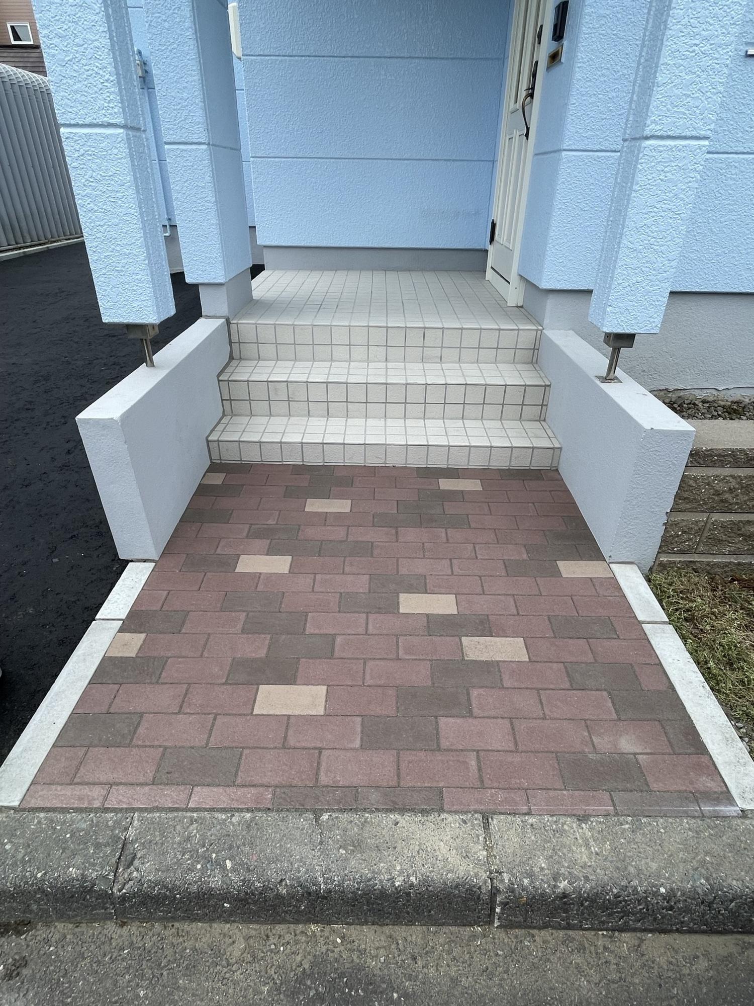 アスファルト、玄関タイル、ブロック塀を新しくして、インターロッキングを新設しました。 アスファルトを撤去しインターロッキングにすることで水も流れやすくなり外観がきれいになりました。