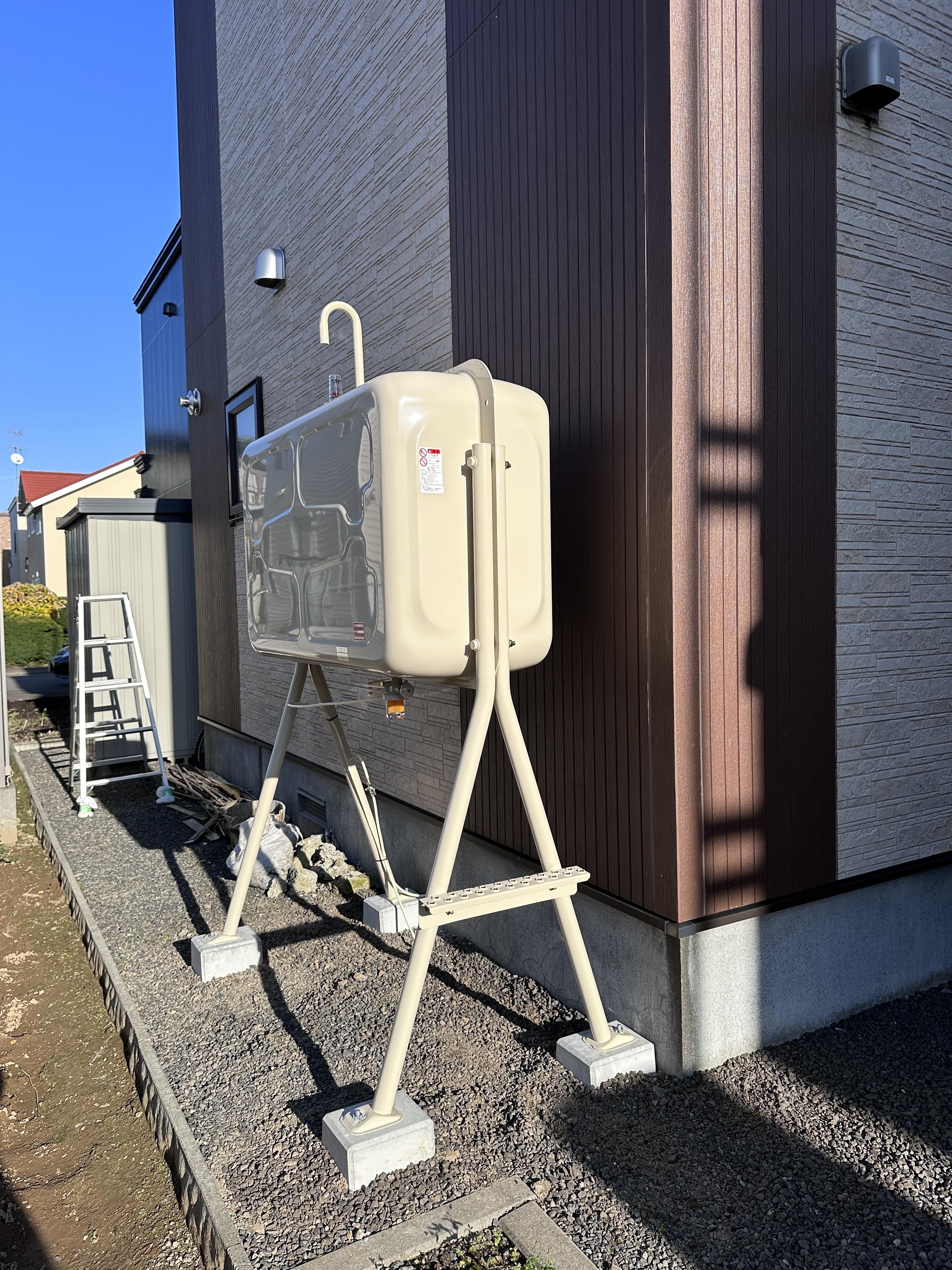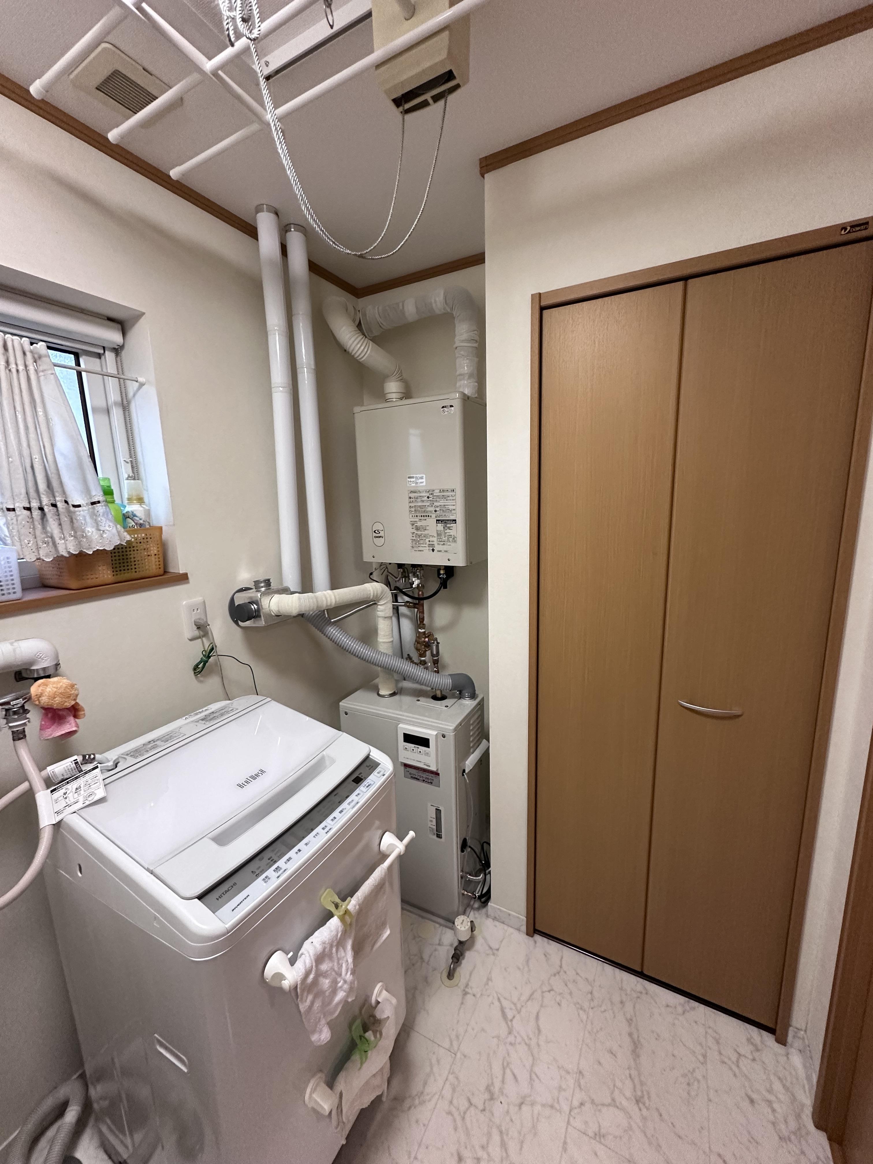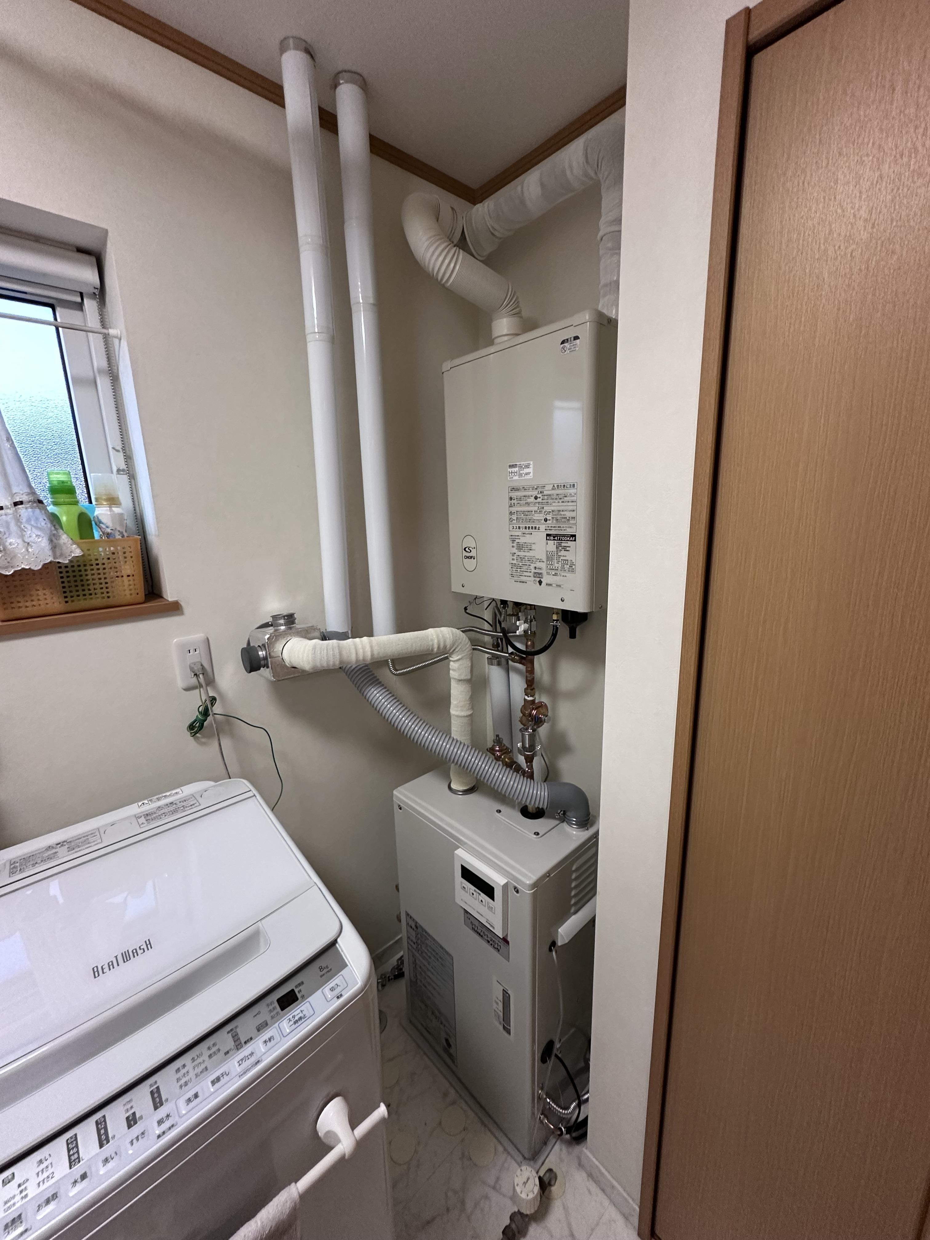 電気温水器の暖房機能が故障してしまい、冬を迎える前に工事をおこないました。 昨今の高騰している光熱費を抑えるために、熱源を電気から灯油に切り替えました。