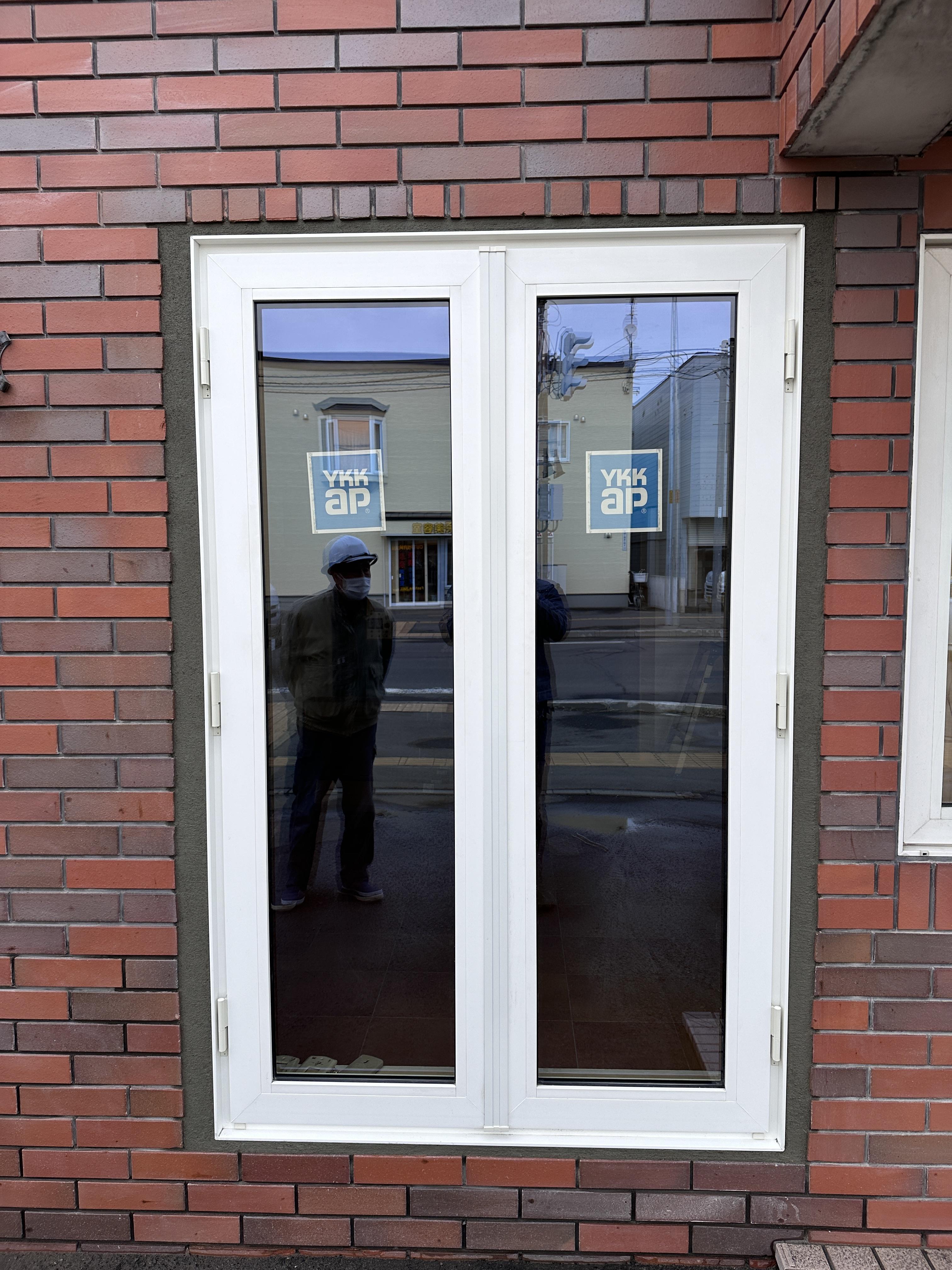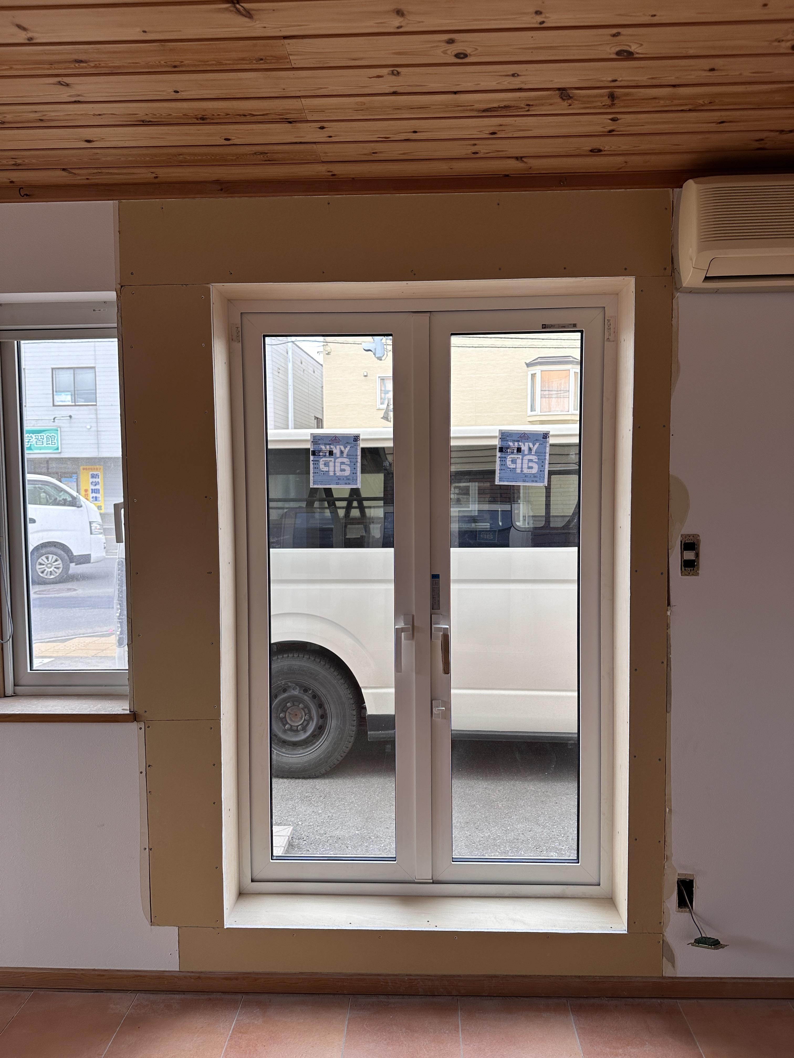 既存の2か所の窓を解体し、人の出入りができるよう両開きの窓へ仕様を変えました。 RC造のため、はつり工事も付随しますが最短3日で工事が完了しました。