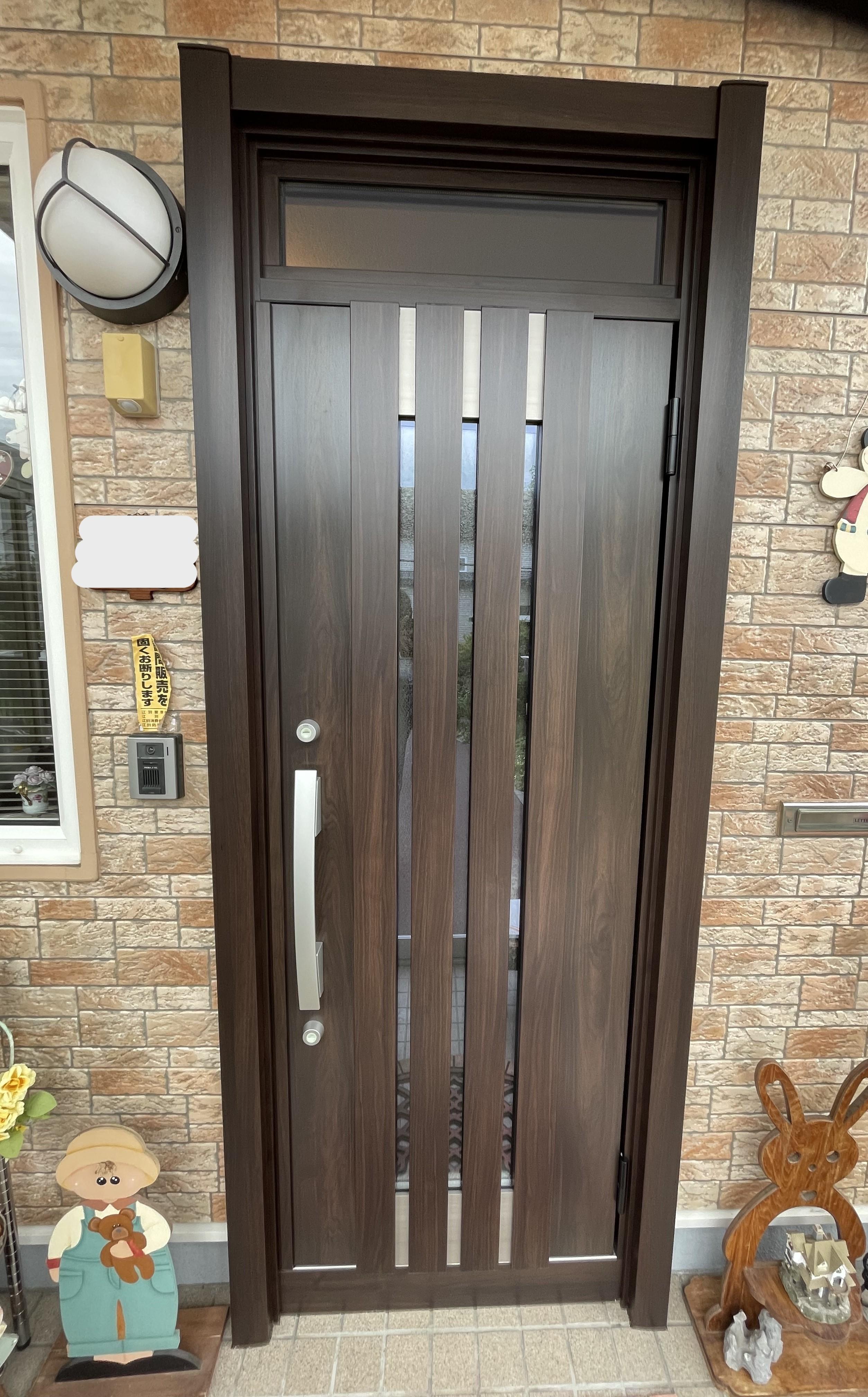 ドアのハンドルの不具合や傷も多くあり玄関ドアの交換をご提案させていただきました。 色も変えることで家の印象も大きく変わりました。 カバー工法にて施工しましたので、1日で施工完了です。 ※~35万円