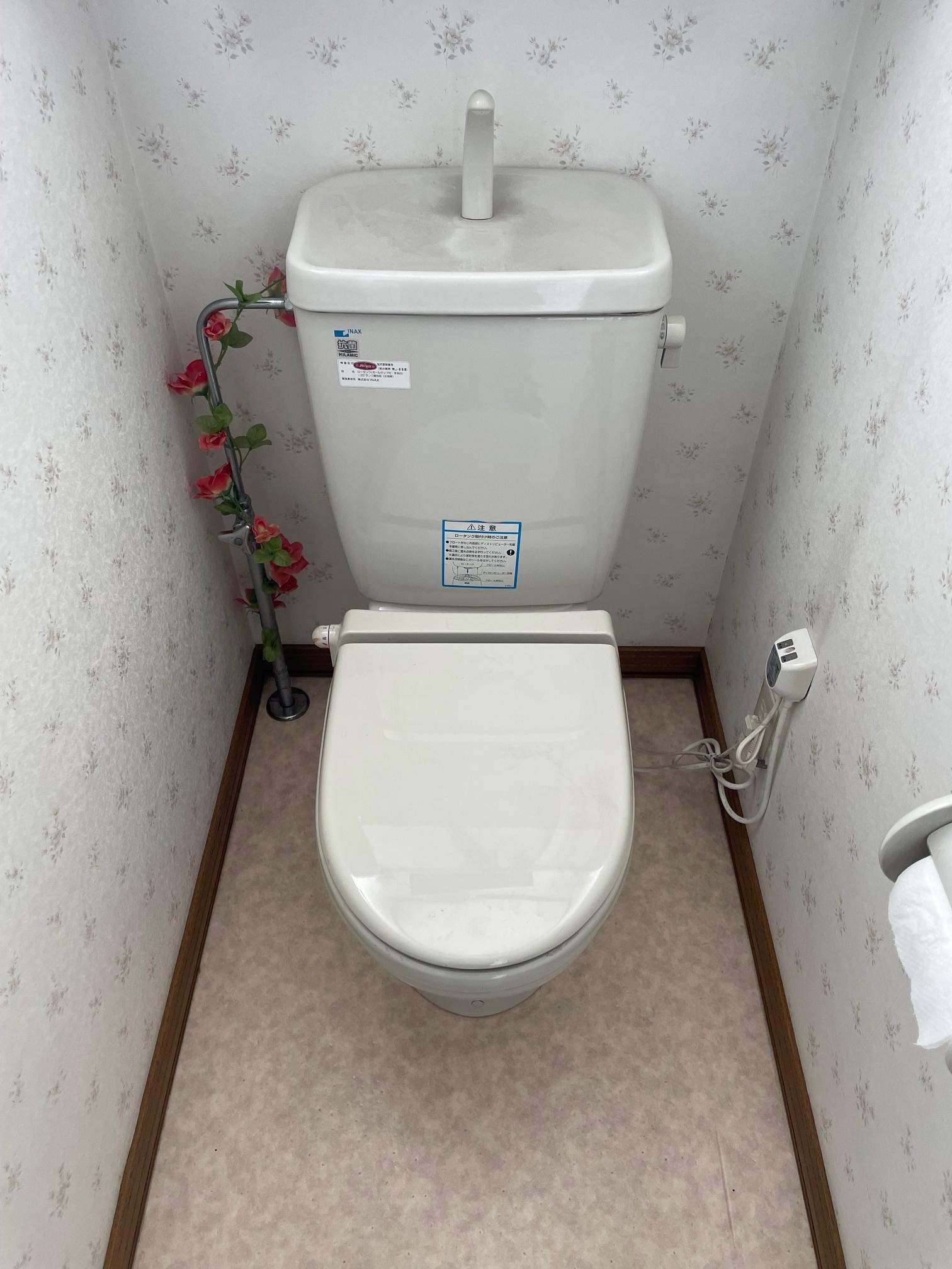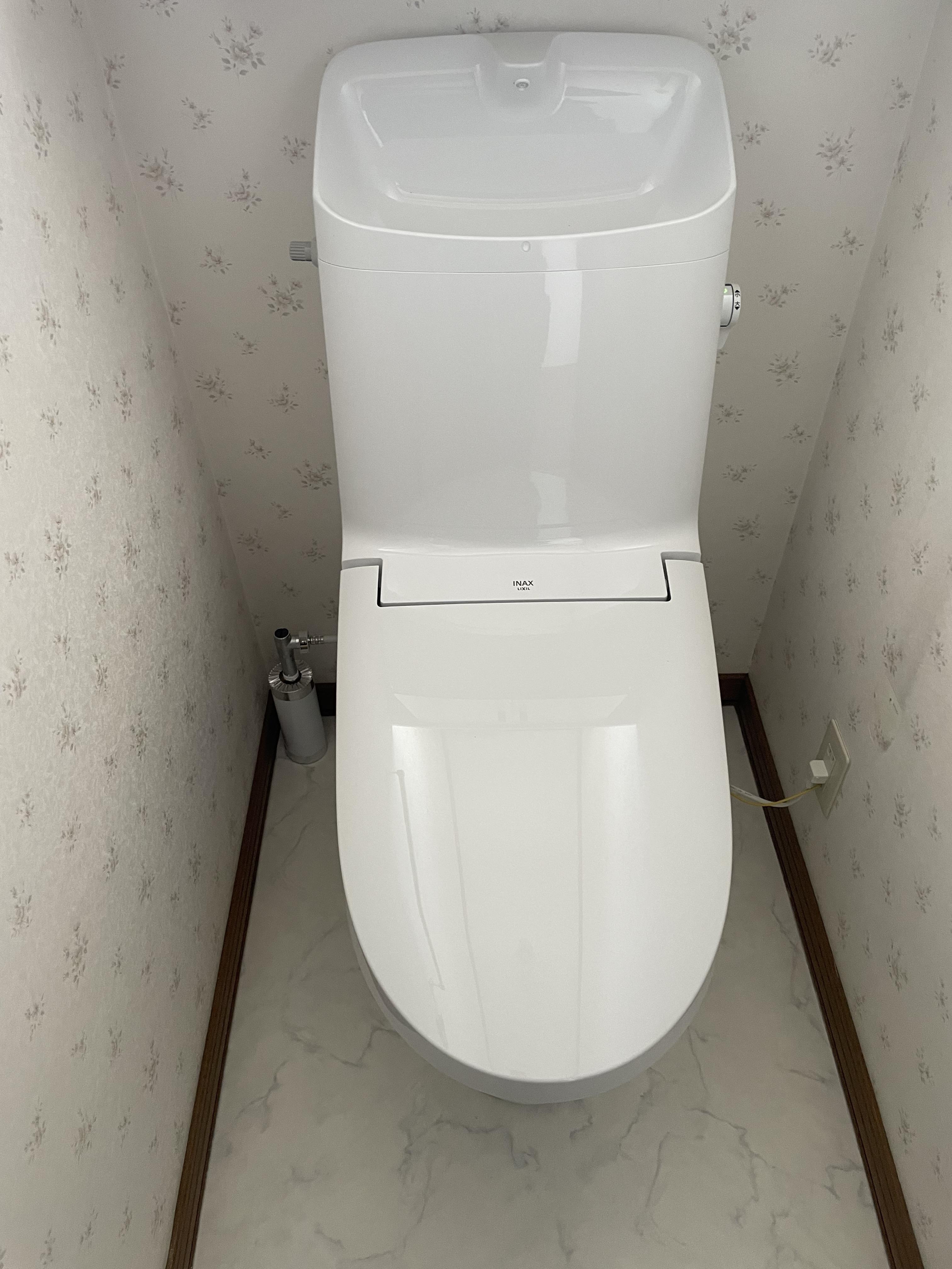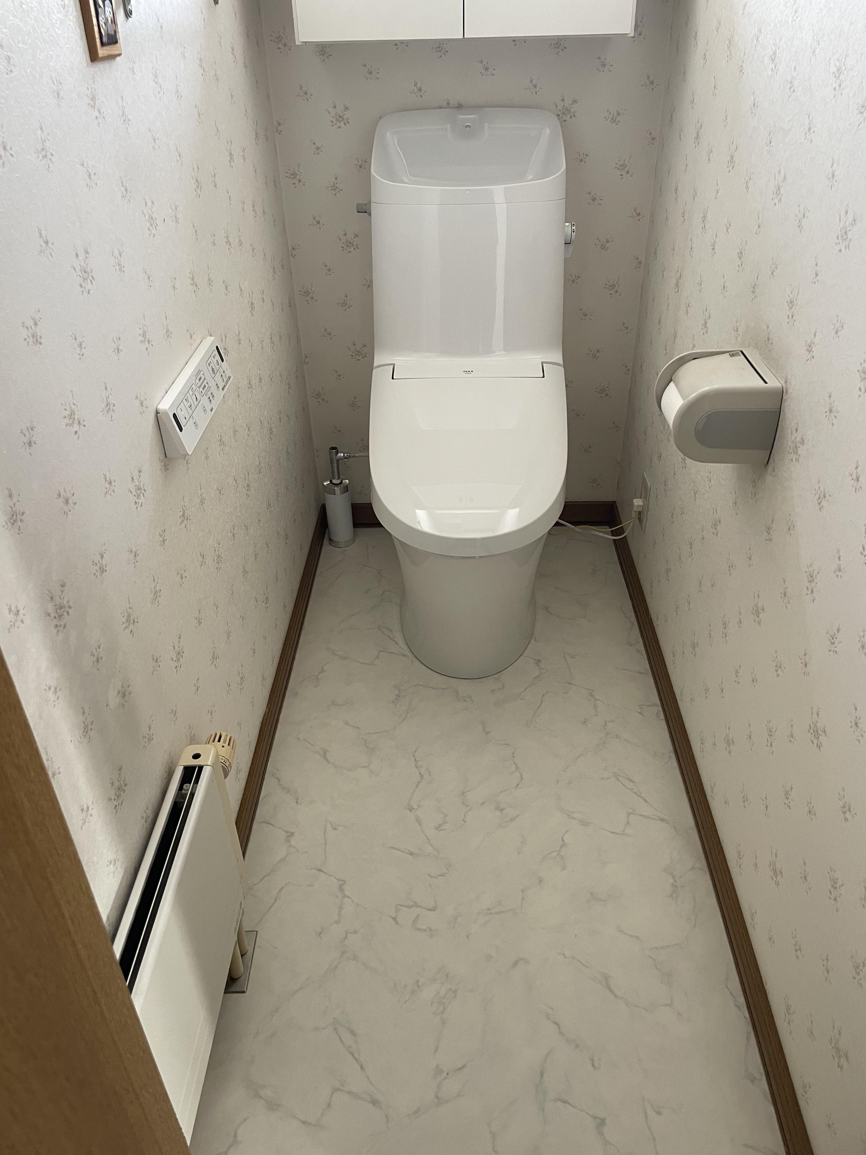 トイレが故障して使用できない状態にあり、トイレと合わせ床のクッションフロアーも一緒に貼替しました。 節水効果や清掃性も高まり、綺麗なトイレ空間になりました。 ※~14万円