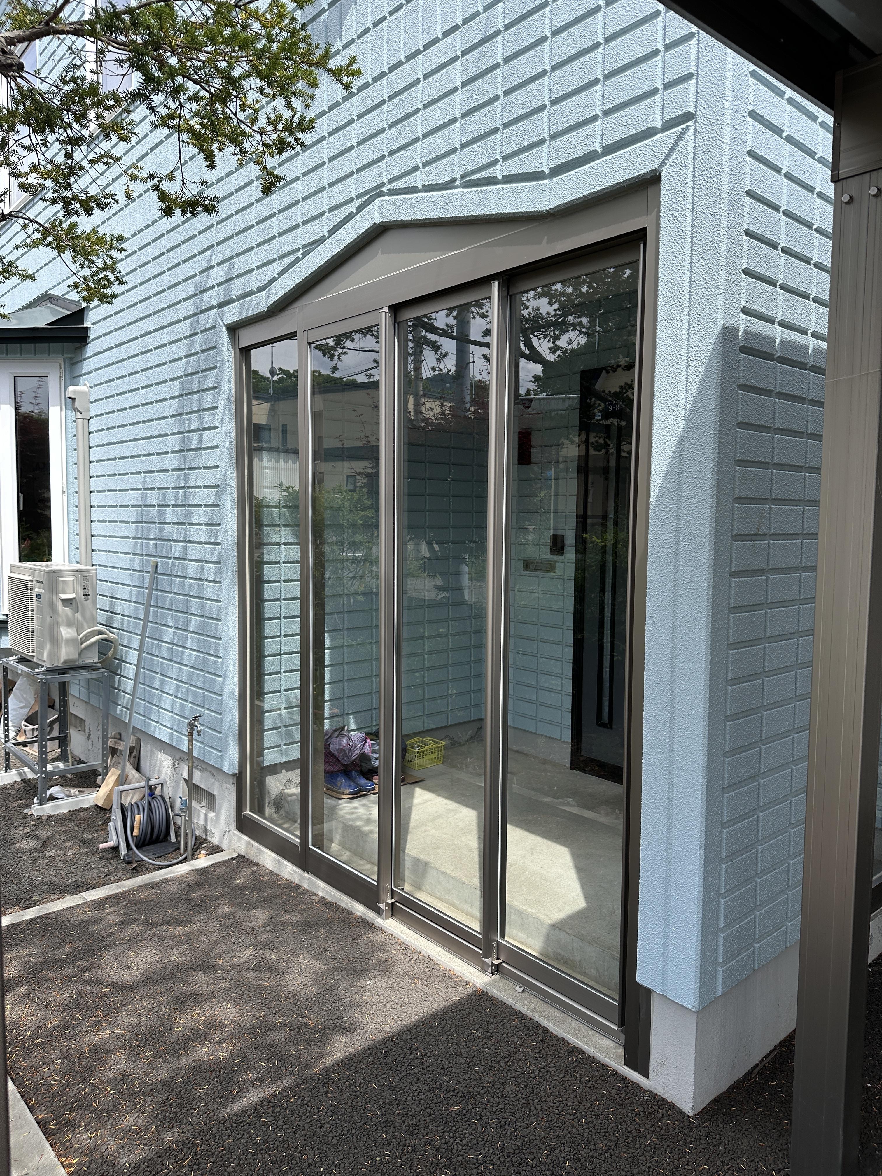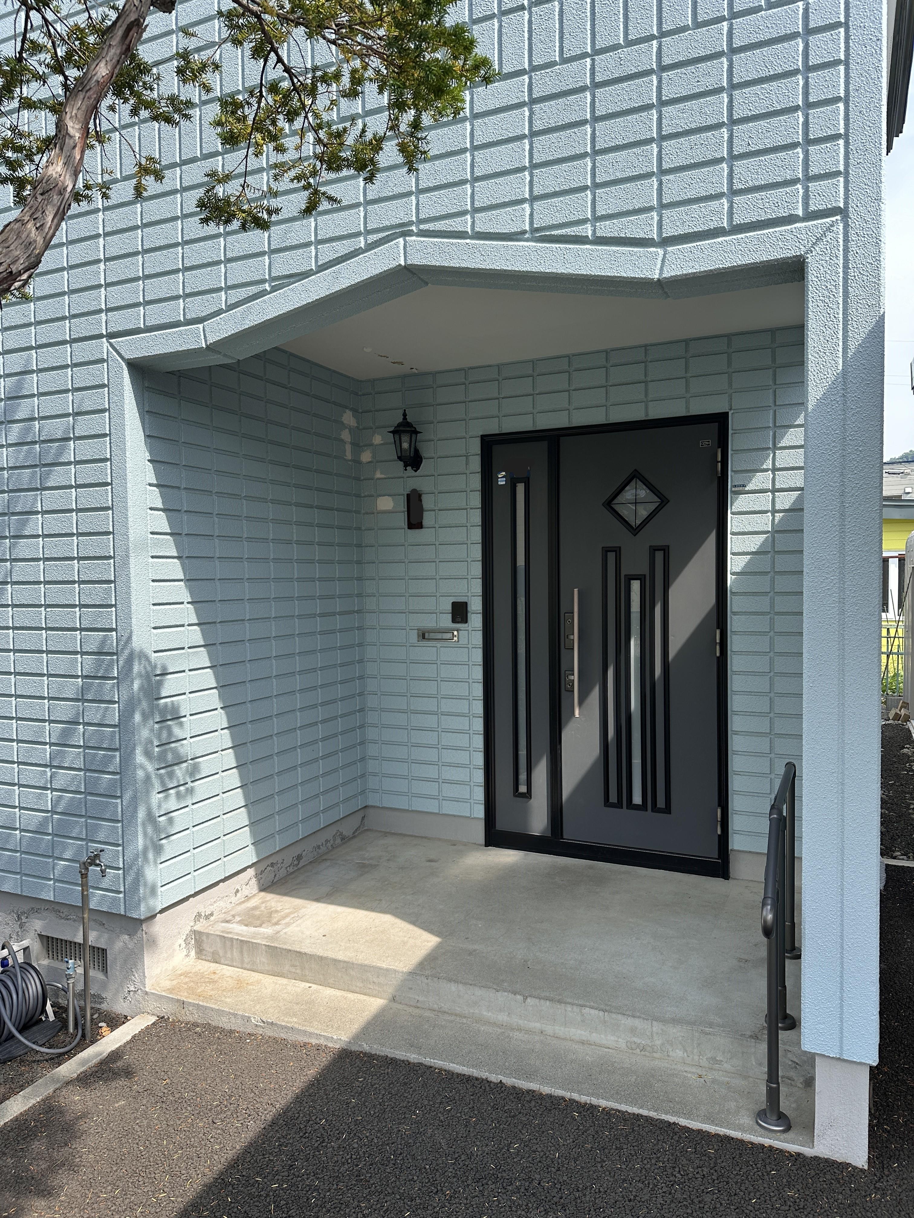 冬場の玄関に雪が吹き溜まるお悩みは風除室を設けることでひとつの改善になります。 以前に施工したカーポートのカラーに合わせることでまとまった雰囲気の外観となりました。 ※55万円