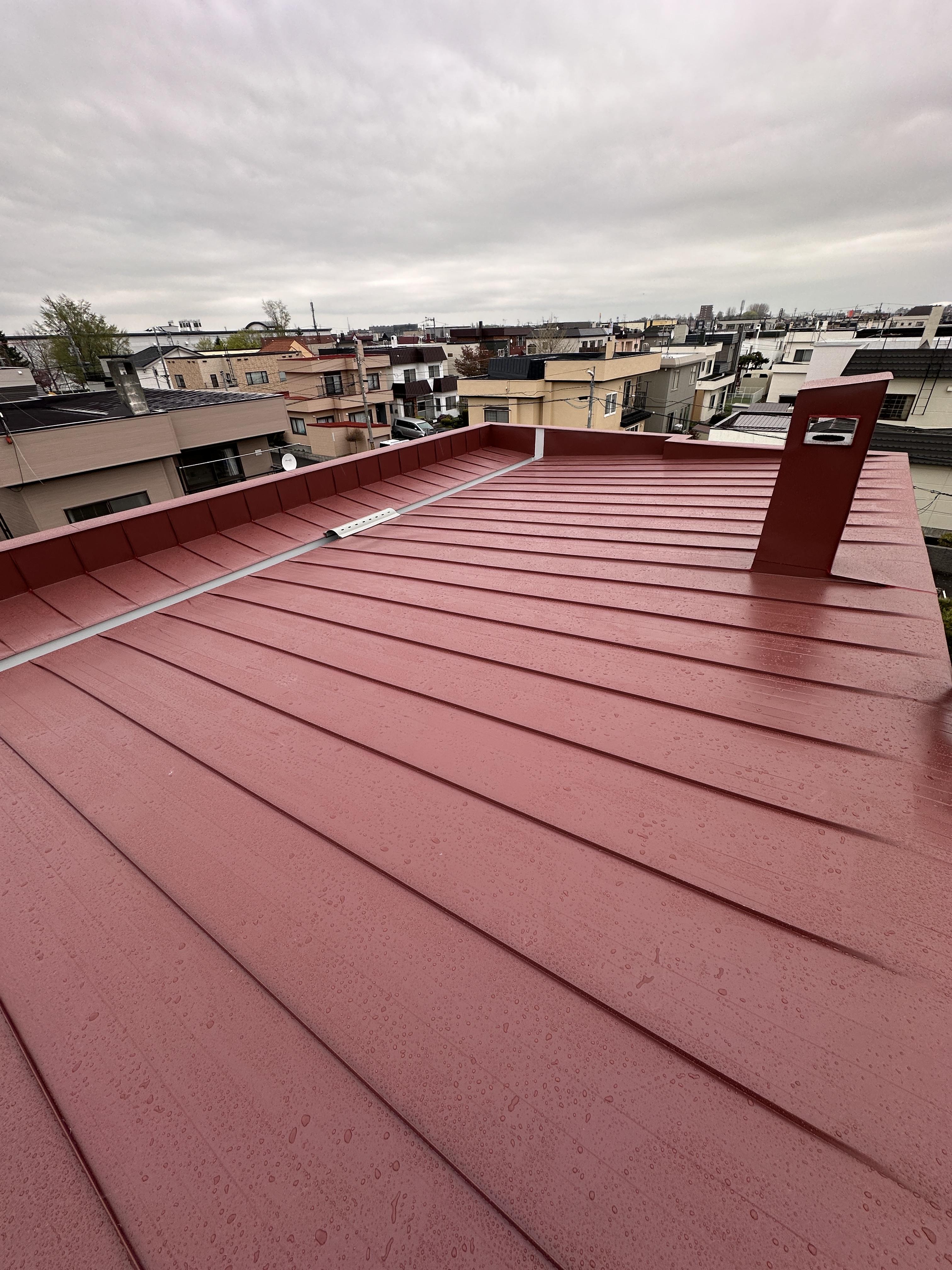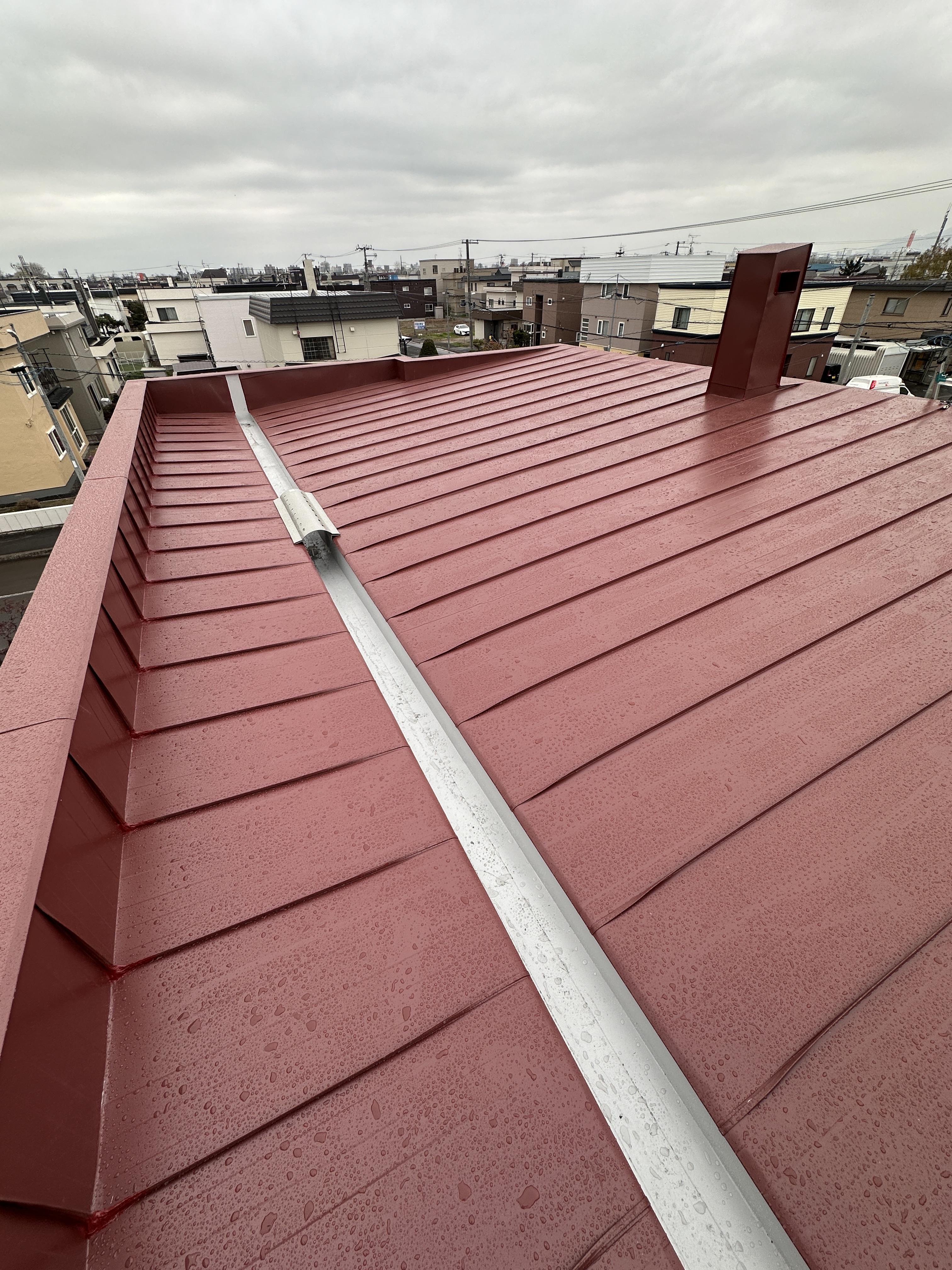 前年に屋根からの雨漏れが発生してしまい応急処置をしましたが、またいつ雨漏れが発生してしまうかわからないという不安から、外壁の塗装工事と合わせて屋根の葺き替え工事をおこないました。 既存の煙突部分のモルタルも以前に補修しており、今後の剥がれを防ぐため煙突にも板金を巻きました。 ※110万円