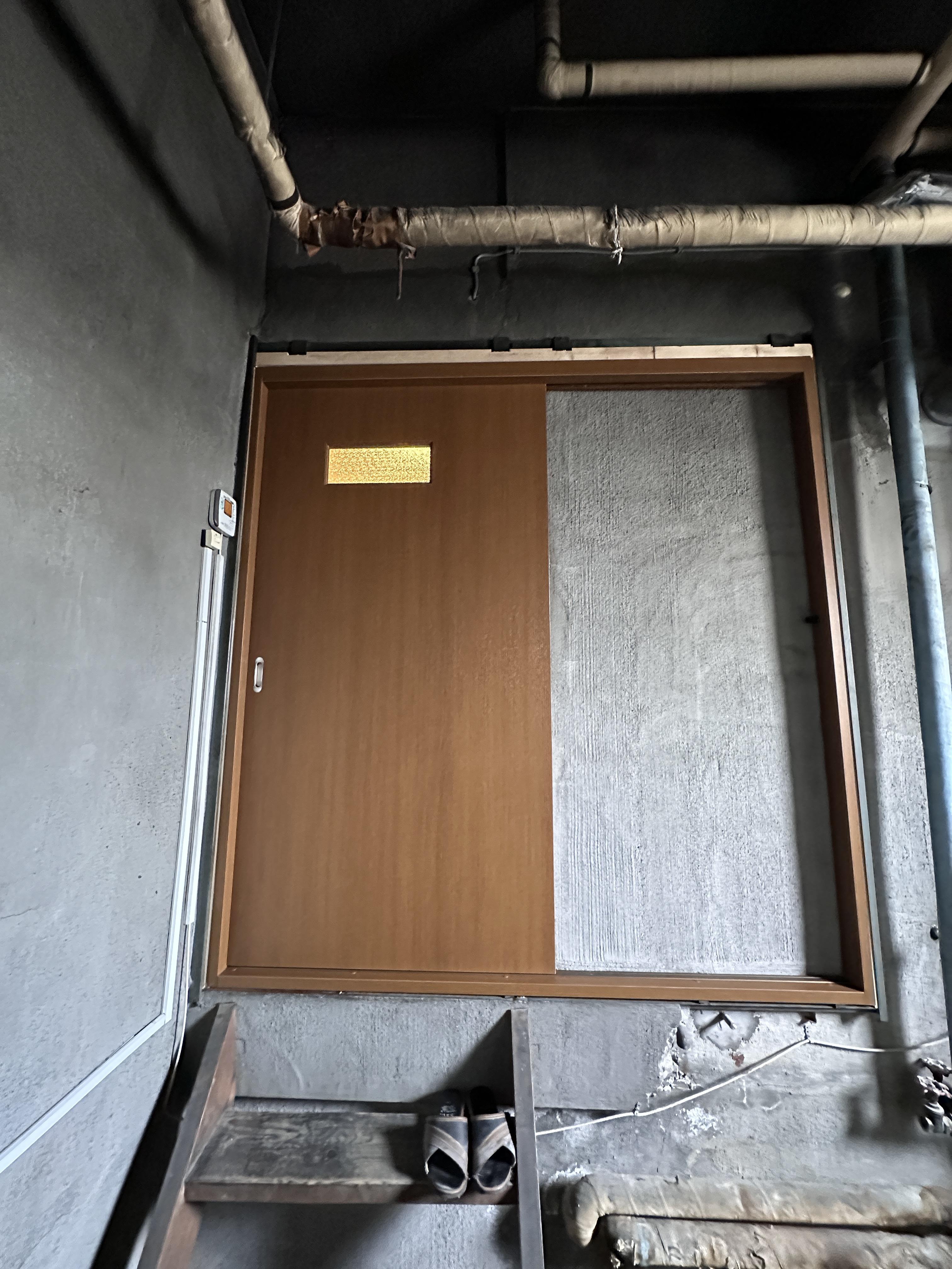 長年住まわれているうちに引戸の建付けが悪くなってしまい、建付け調整では限界があったため、既存の建具枠に合わせて新たに建具を作成いたしました。 既製品ではなく特注品で作成するため、カラーやガラスの大きさなどはお好みに合わせて作成することができます。 ※38万円