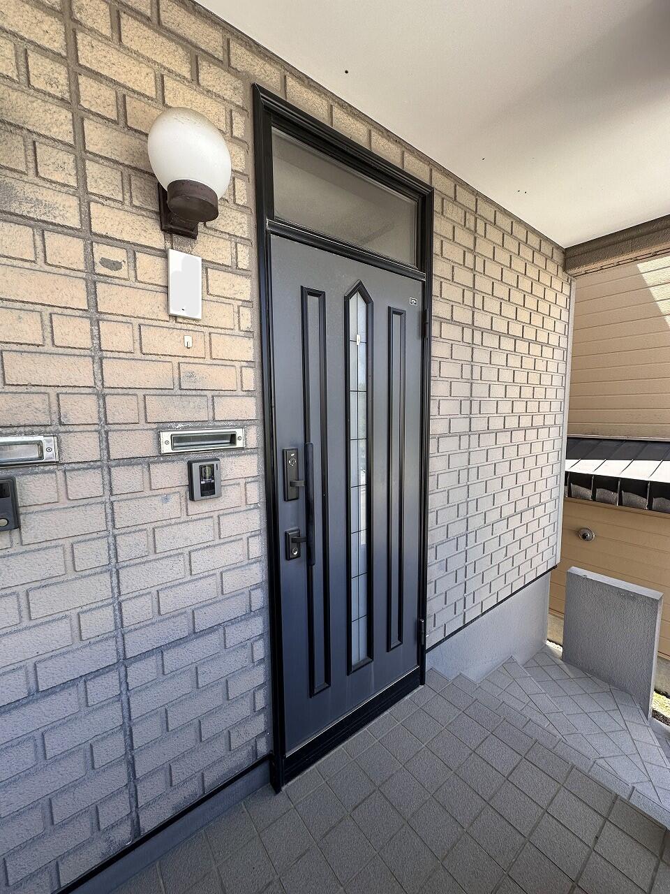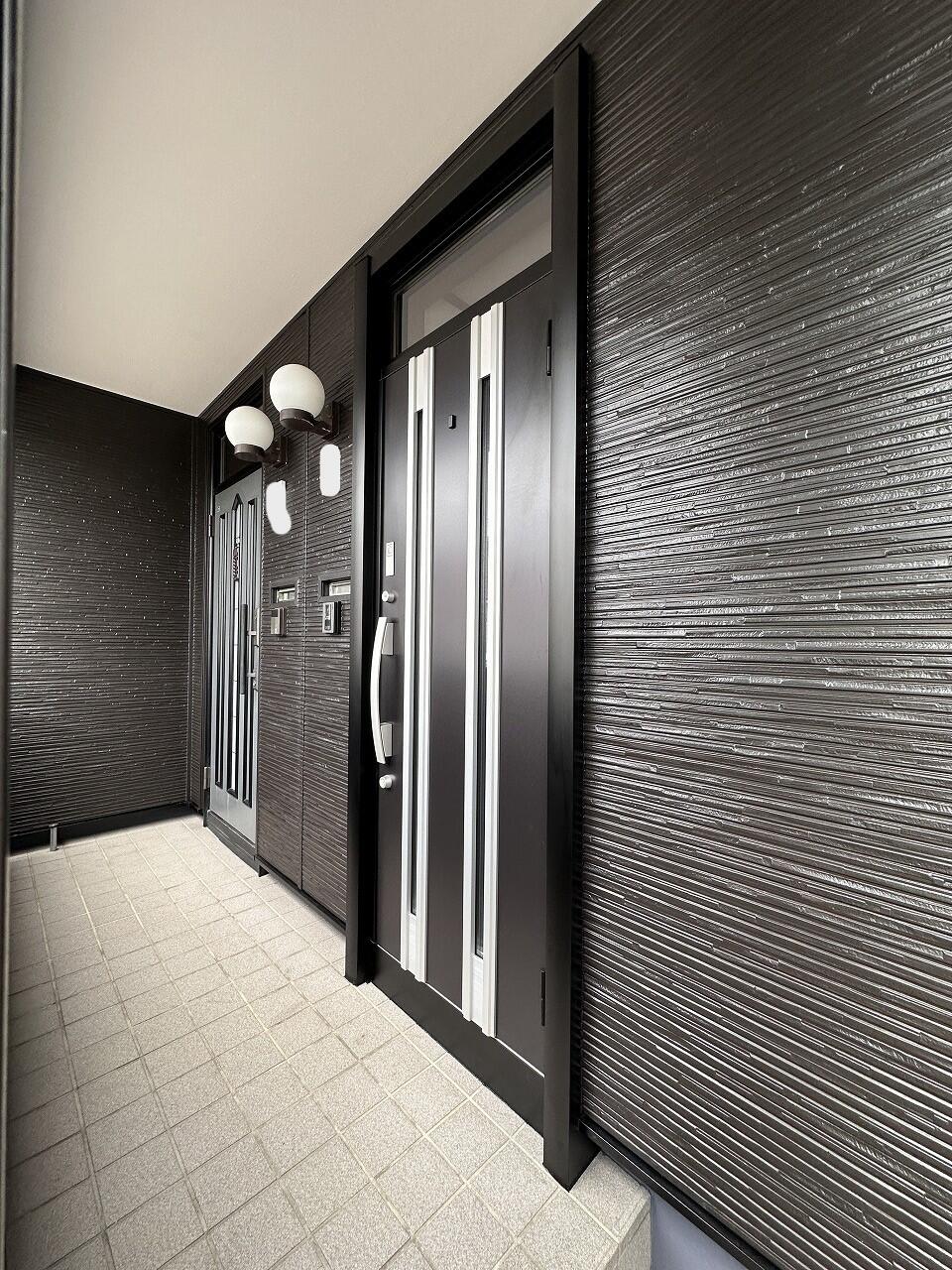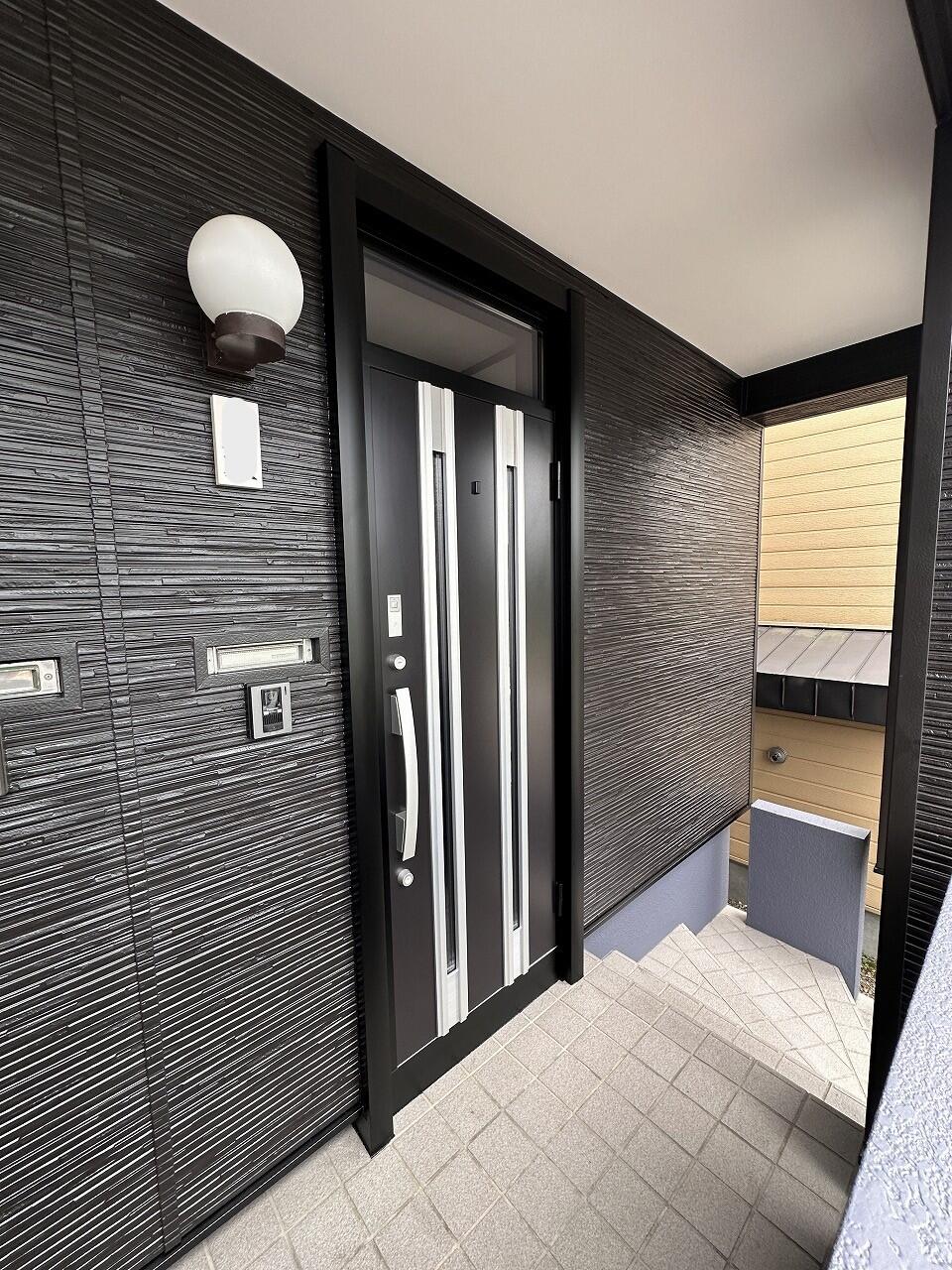 外装工事と併せてリフォーム玄関ドア工事をおこないました。 外壁と合わせたブラックを基調とし、オプションとして電子錠『ファミロック』を採用していただきました。 ※50万円