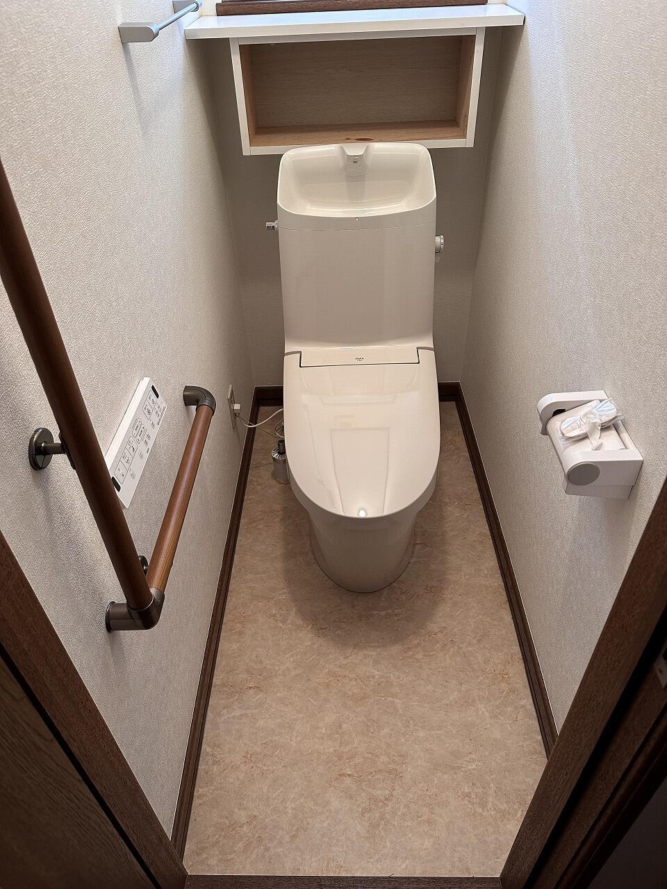 故障してしまった電動水抜き栓の交換と合わせて、便器の交換、壁のクロスの貼替、床のクッションフロアの貼替をおこないました。 今回採用いただいたLIXIL『ベーシアシャワートイレ』は、お手頃な価格でありながら、節水効果も高く、お手入れのしやすさにも定評がある商品となります。 ※37万円