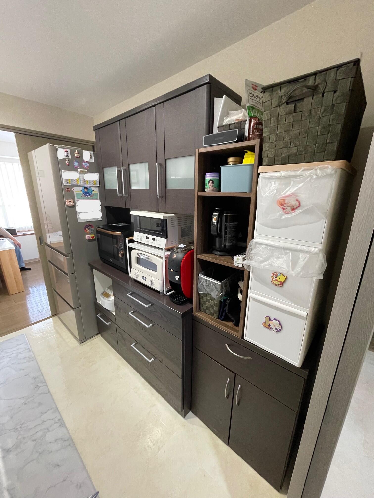 収納扉の不具合により、交換することになりました。キッチン本体がLIXIL製ということもあり、収納部もLIXIL製に揃えられ色の統一感もありいい空間に仕上がりました。