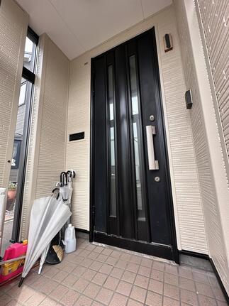 既存の窯業系サイディングが水を含み膨張している箇所や外壁が一部剥がれている箇所など多くの劣化箇所が見受けられたため、塗装ではなく上張り工法にて金属系サイディングを施工させていただきました。 デザインやカラーはこれまでとは全く異なるものを選定いただき、アクセントとして玄関ポーチ部分はカラーを変えられました。