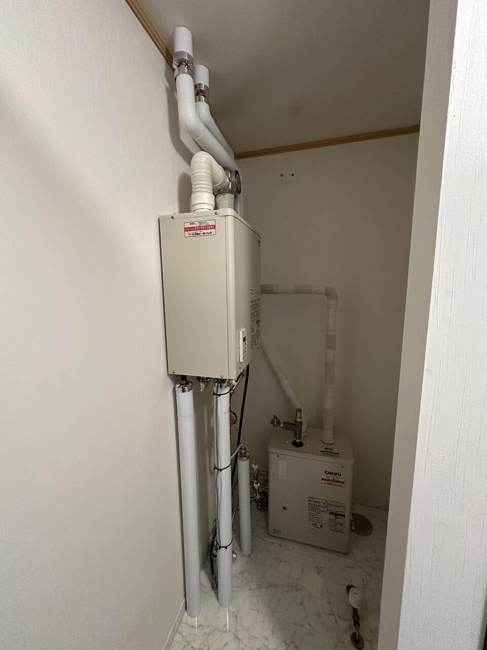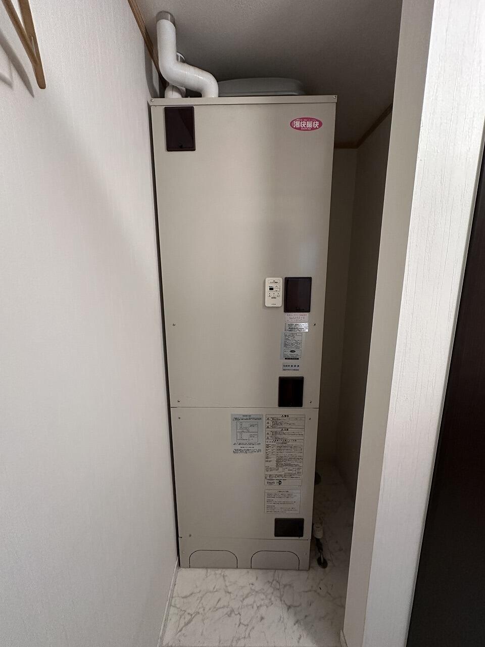 電気温水器の不調が続き、メーカーでの部品供給が終了してしまっているため、近年の電気代を鑑みて電気温水器から灯油ボイラーへ熱源を変更いたしました。