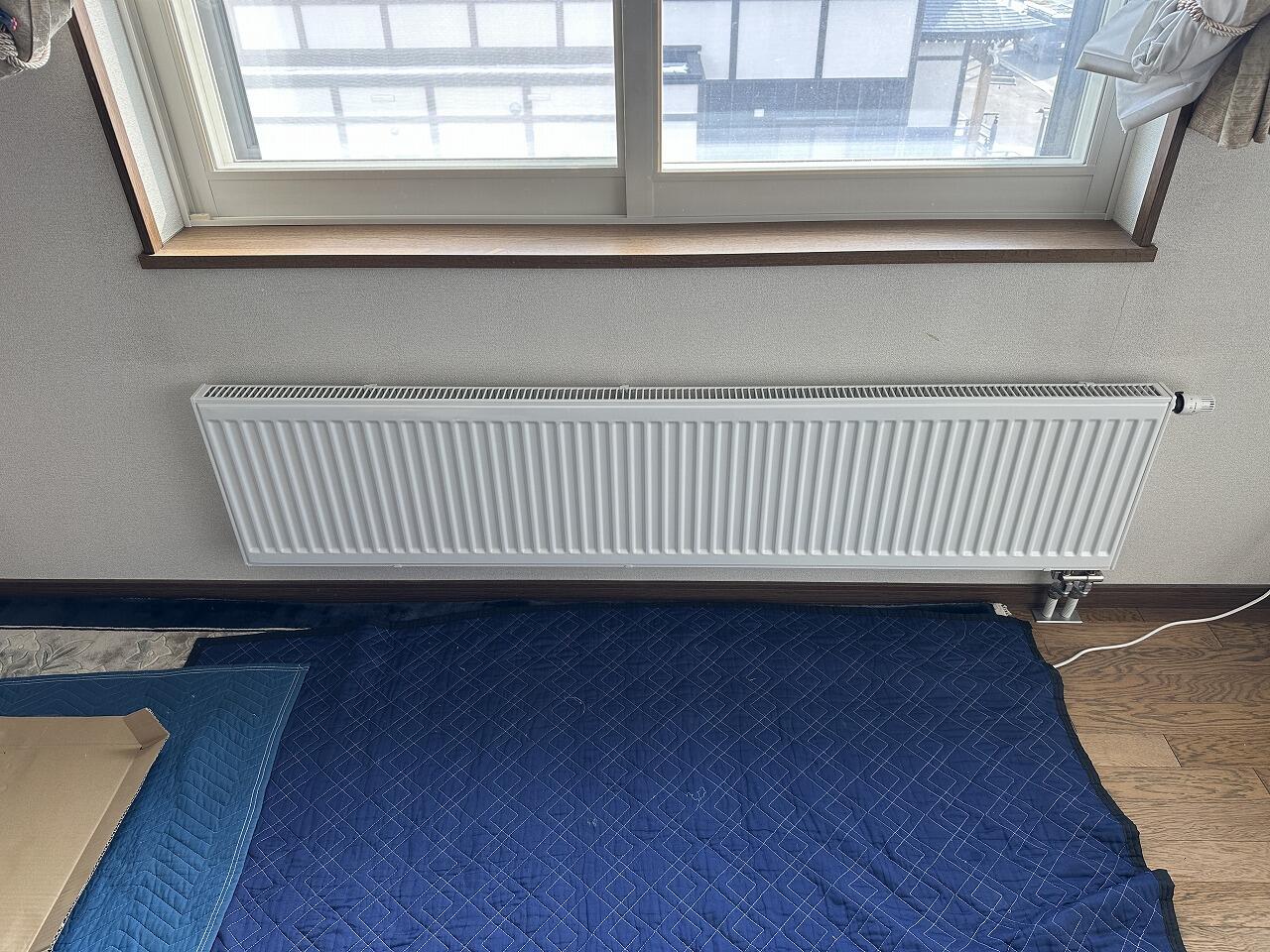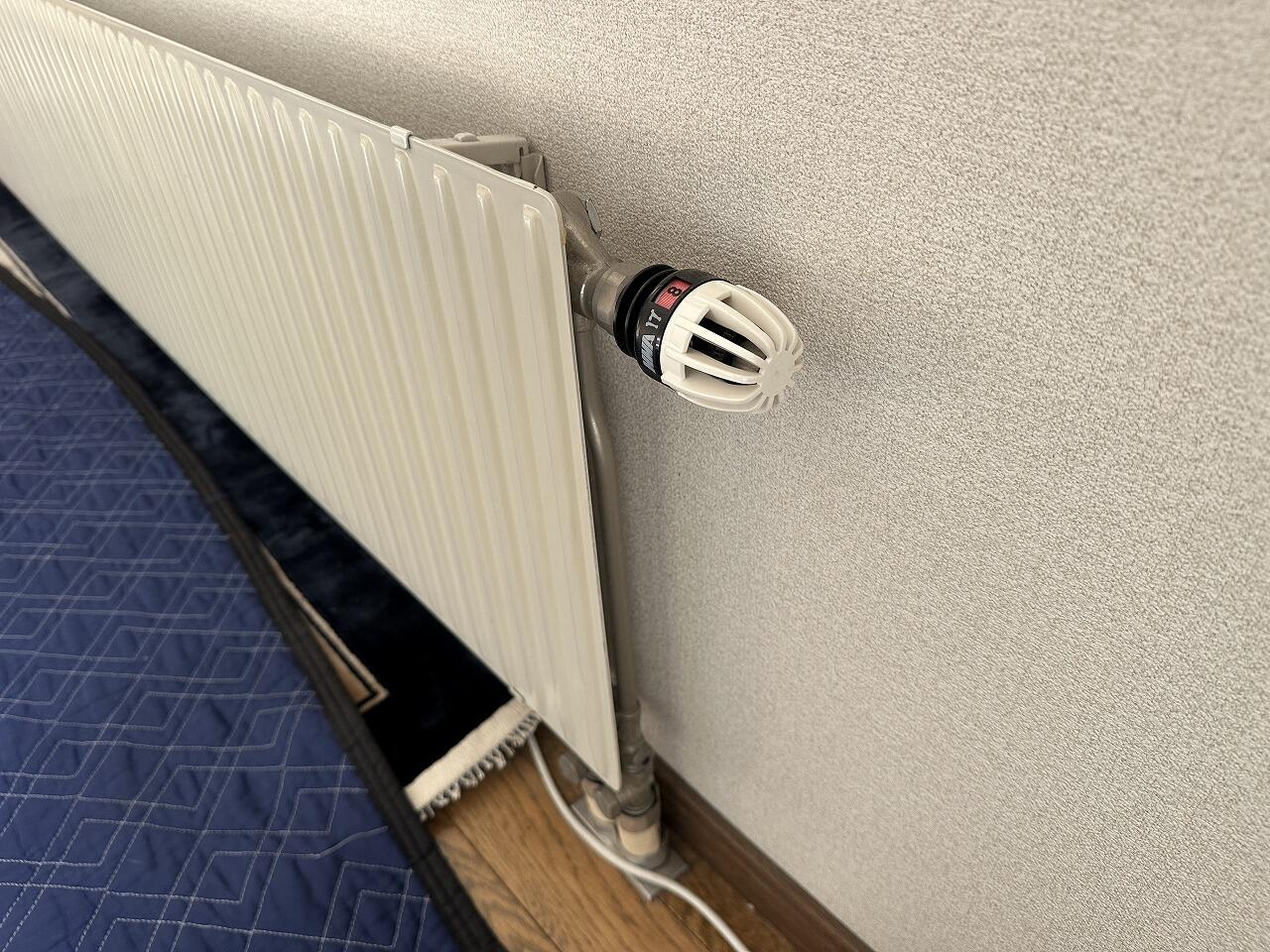 パネルヒーターに穴が開いてしまい、不凍液が漏れてしまっていました。 バルブの不具合もあり、新しいパネルヒーターへと交換させていただきました。