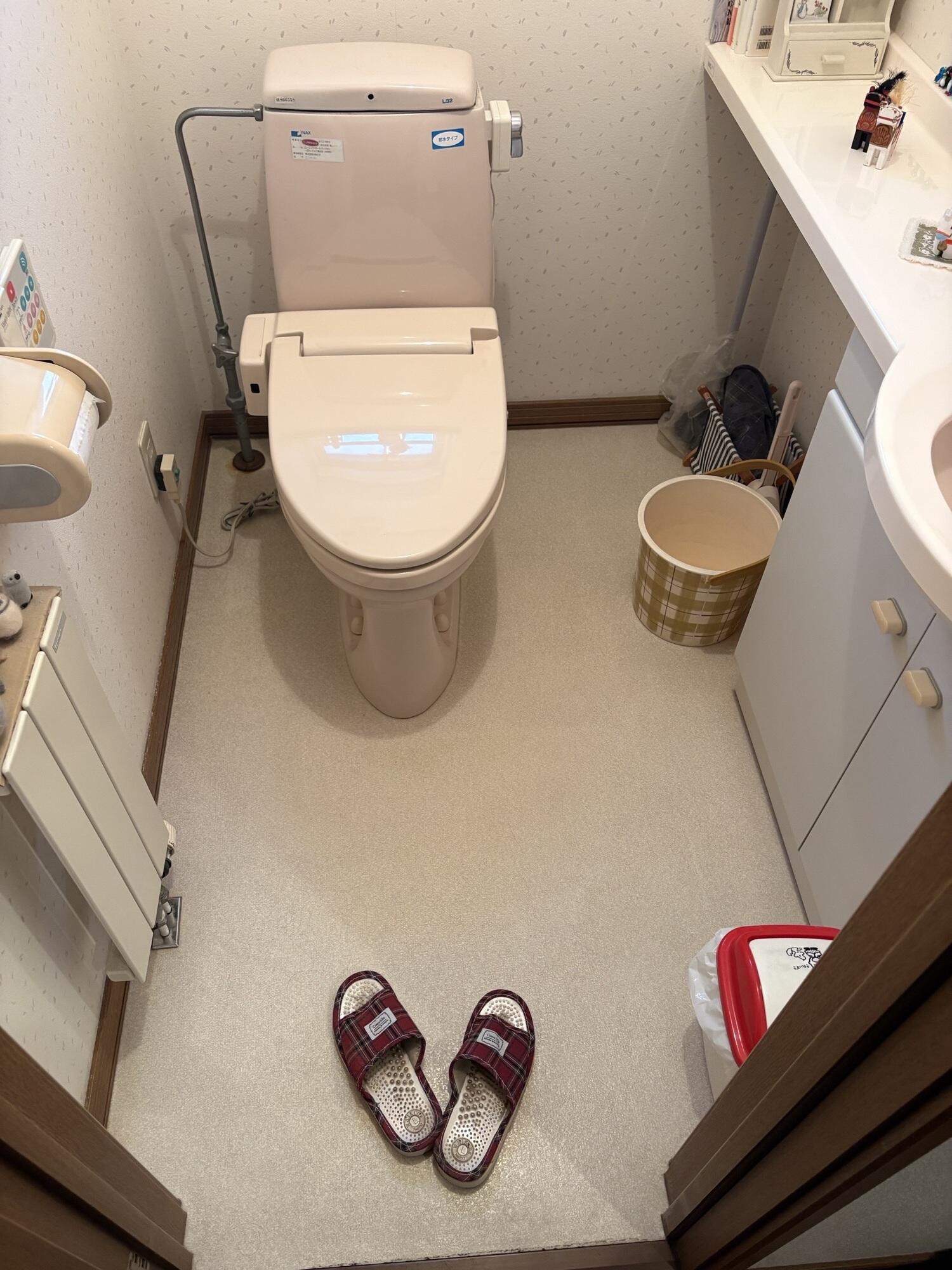 年数の経っていたトイレをこの機会に新しくしました。 一緒にクッションフロアも張り替えたので雰囲気も良くなりました。