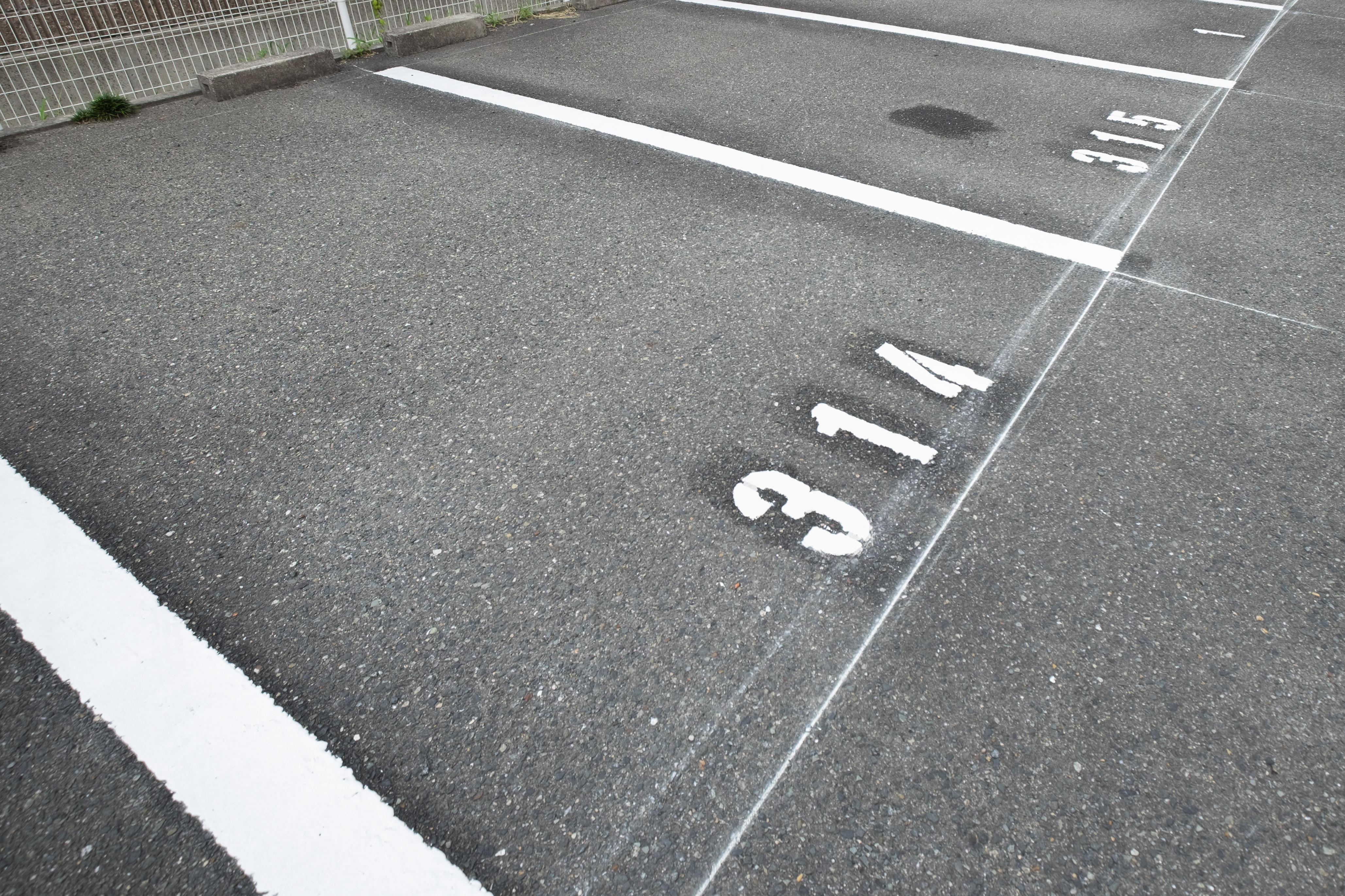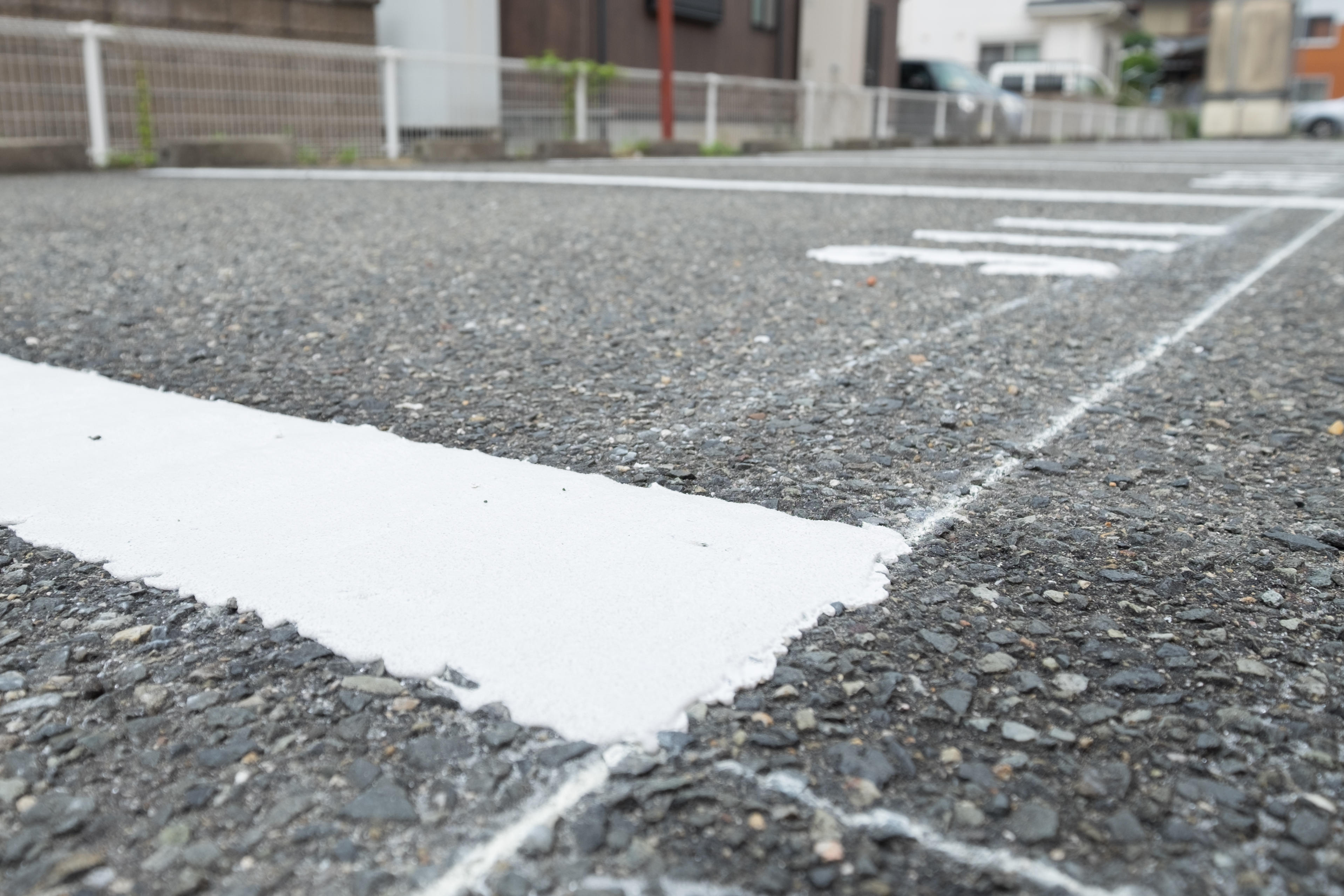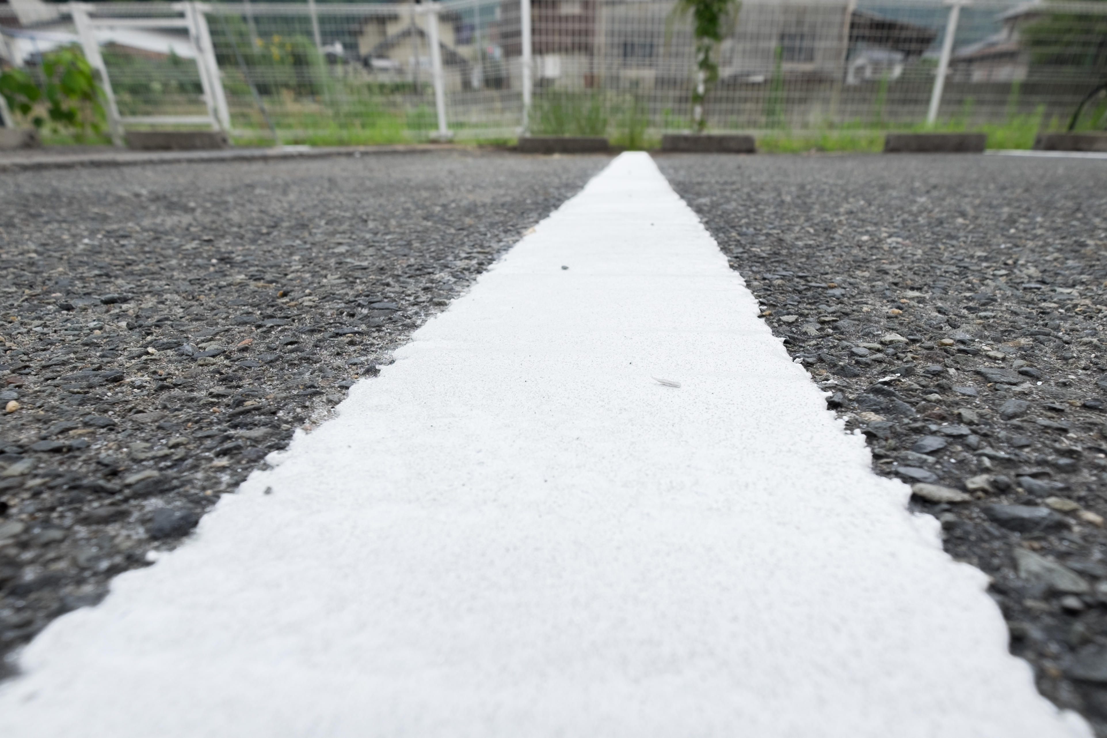 消えかけていたマンションの駐車場の白線。きれいに白線を引かせていただき、夜でもくっきり認識できるようになりました。