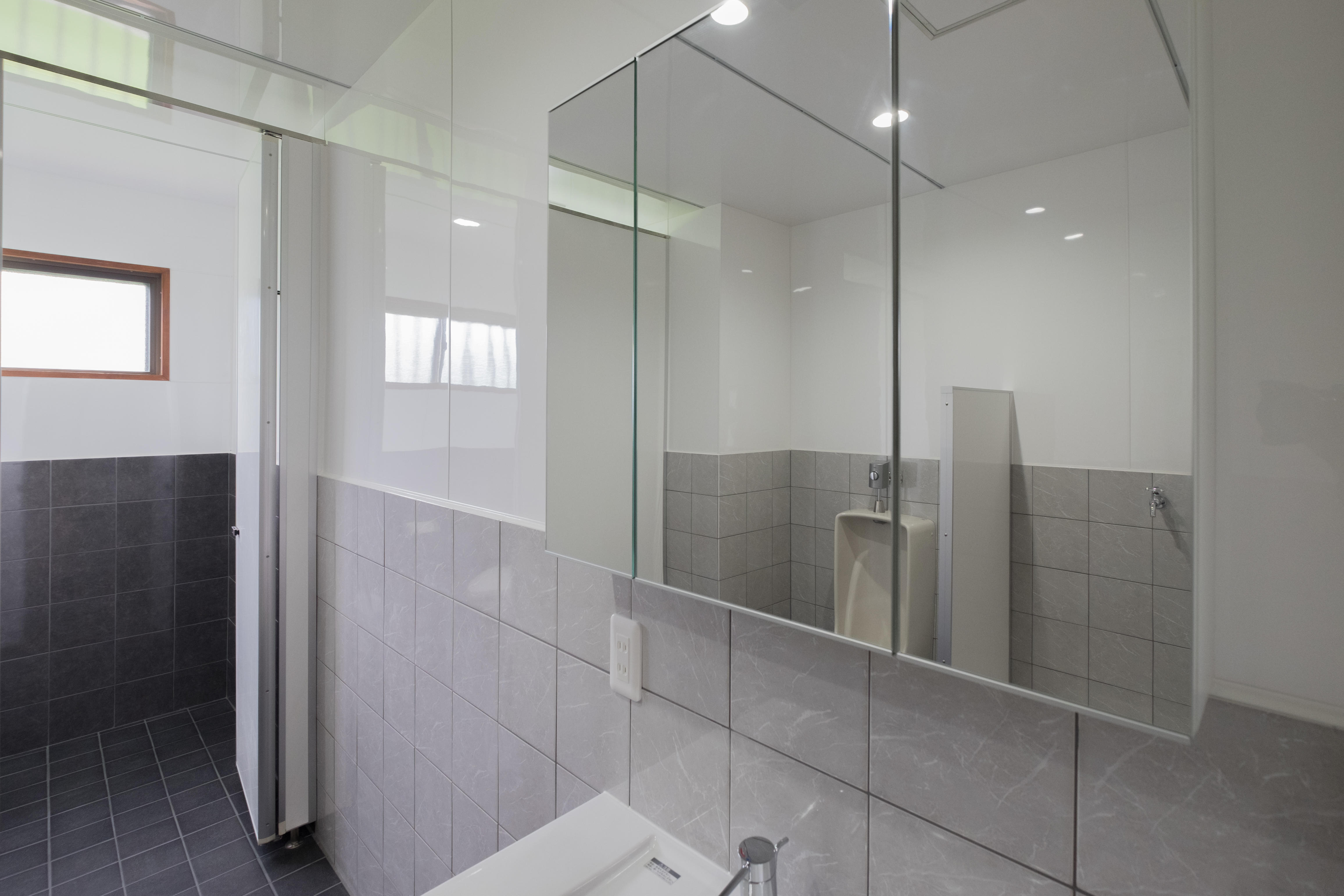 お施主様より事務所のトイレを一新してほしいというご要望。白と黒を基調としたタイルを使用し、上品な空間へ生まれ変わりました。