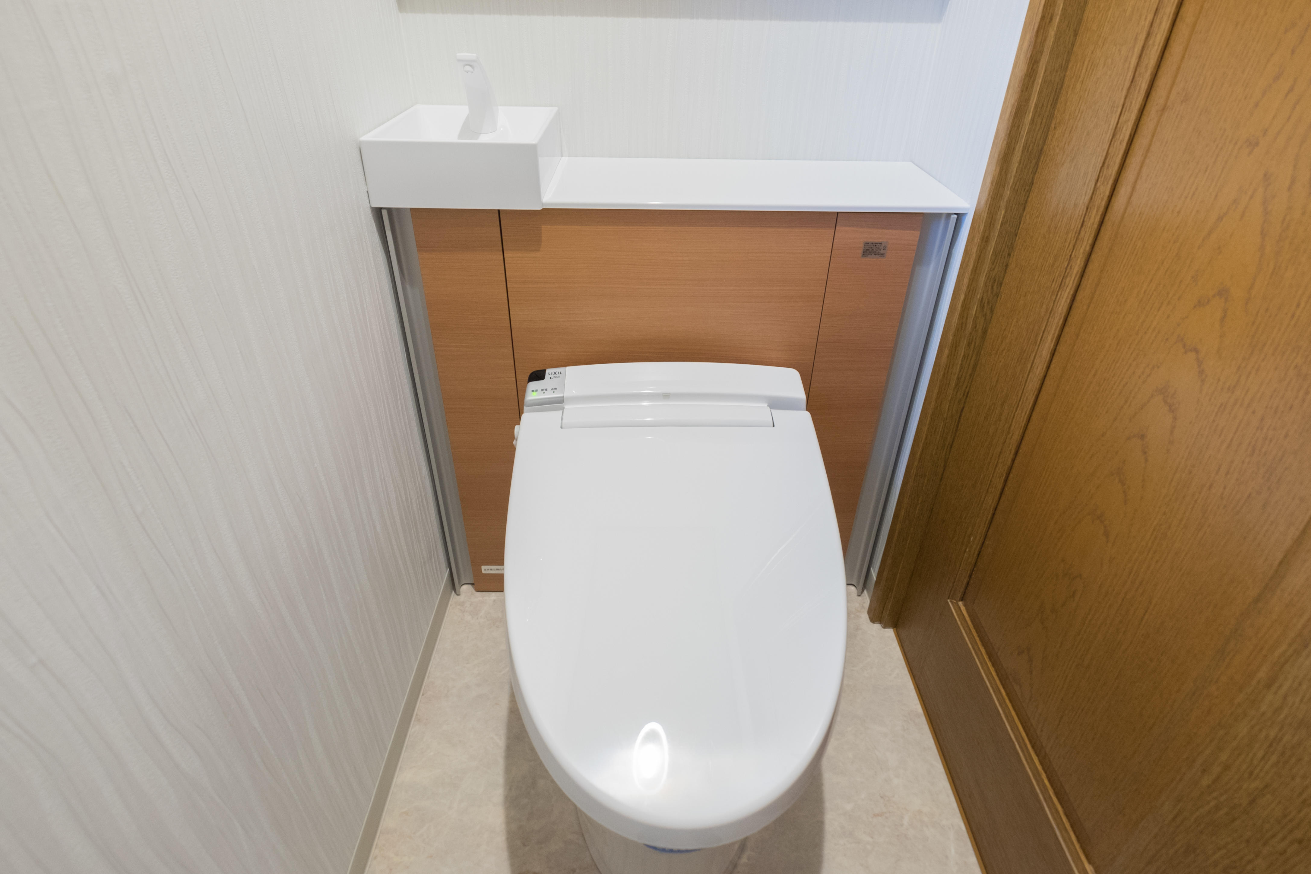1階と2階のトイレと壁紙をリフォーム。別々の空間を体感したいということで、1Fは、落ち着きを感じることができる空間へ。対照的に2階は、明るく光りを感じることができるような空間へイメージチェンジ!