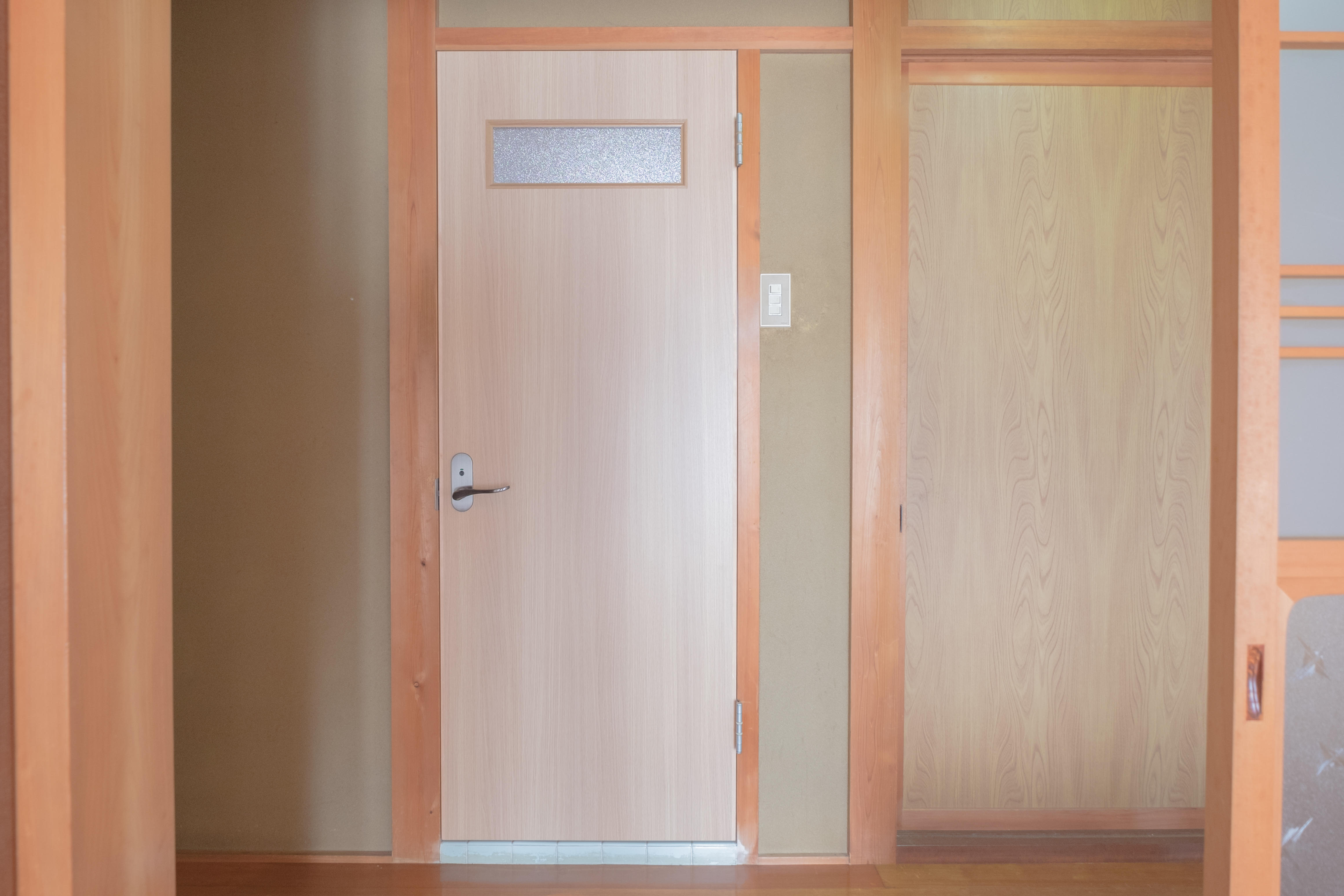 トイレの水漏れがあったためにトイレをリフォーム。トイレと一緒に施錠なしのトイレドアも施錠付きへ交換させていただきました。