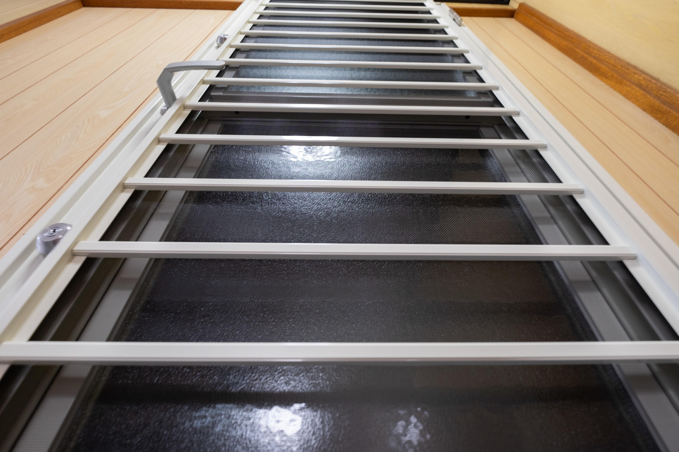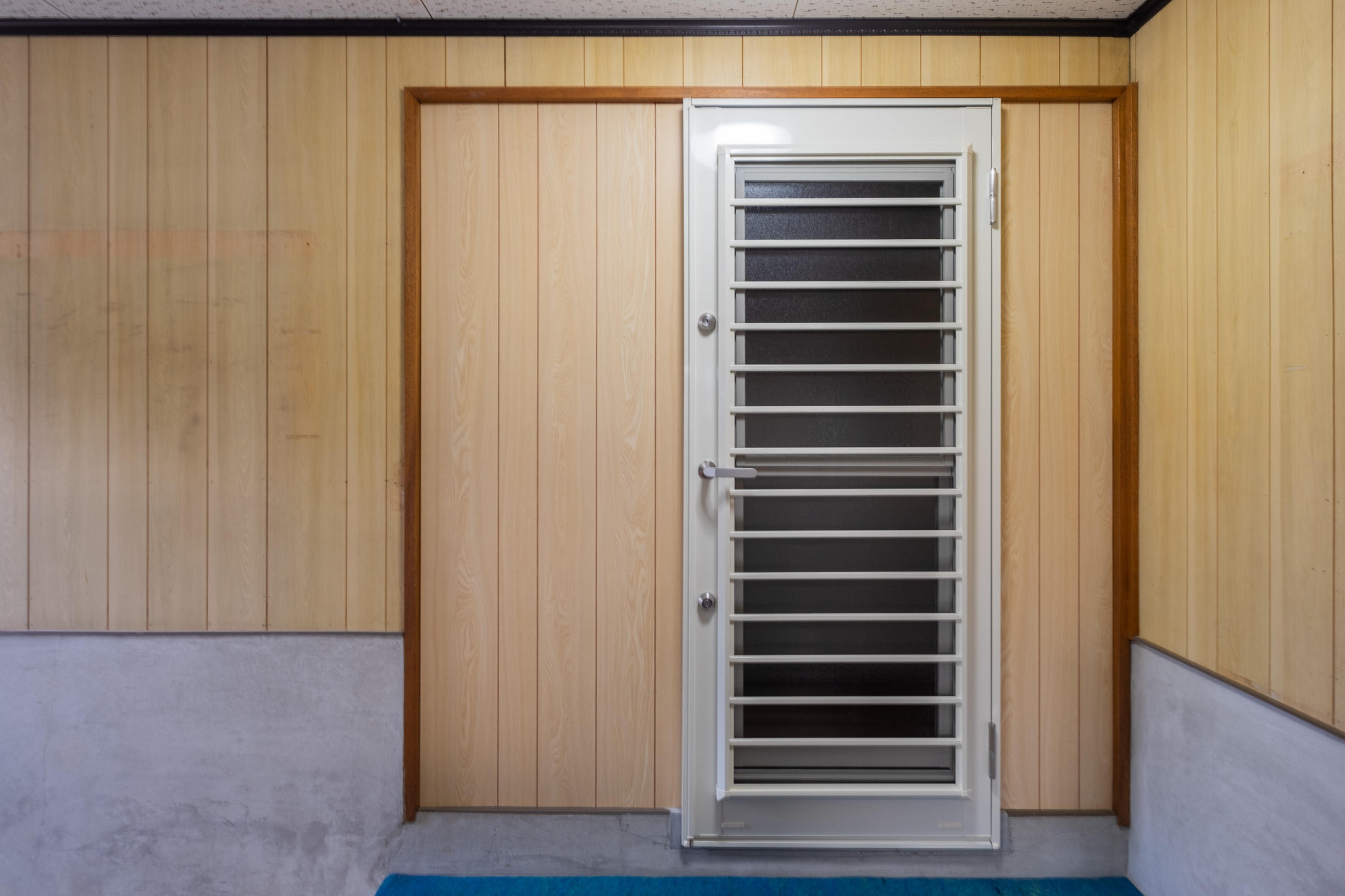 駐車場と繋がっていた、薄い一枚の引き違い戸を断熱性が高い勝手口ドアへ1日リフォーム。