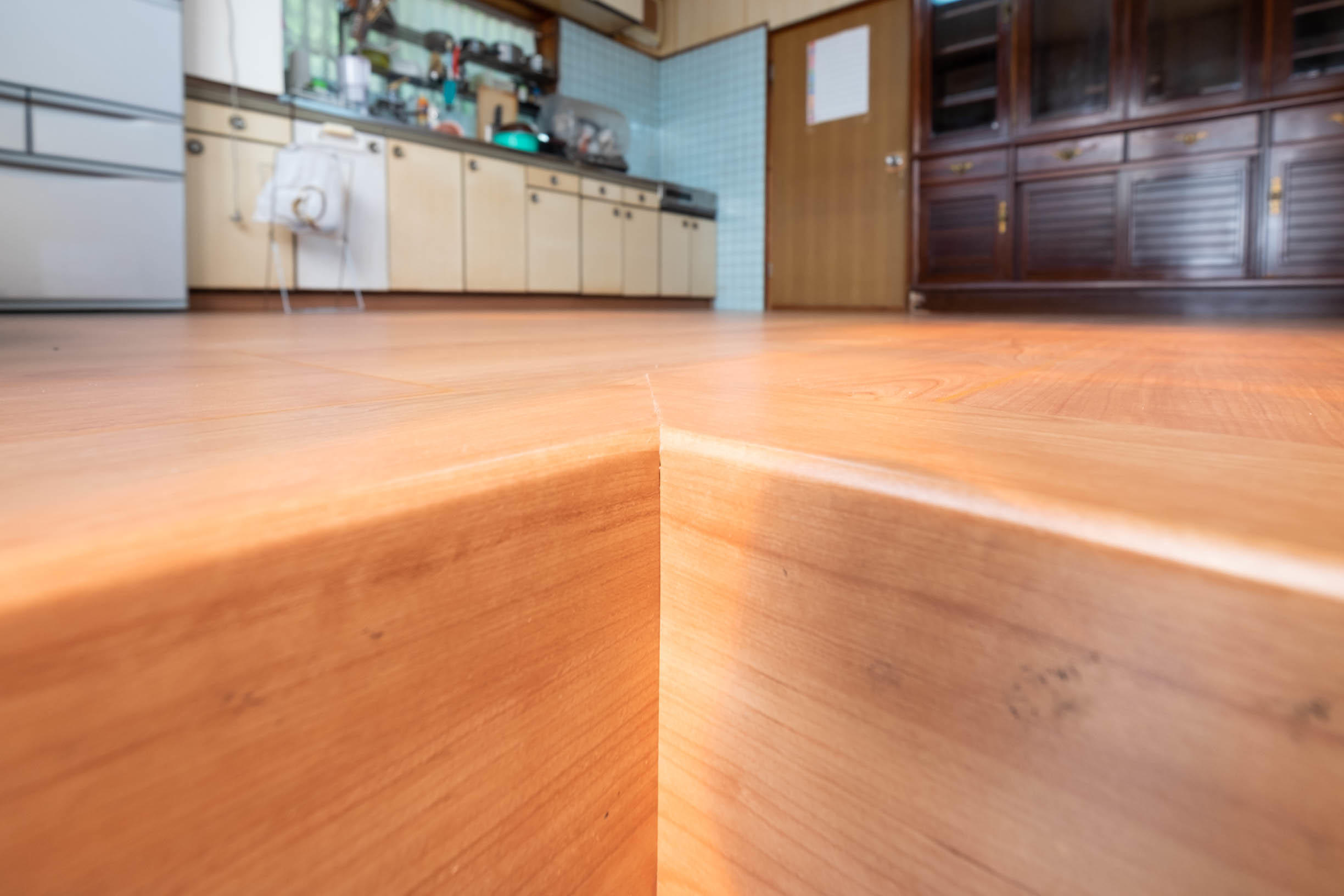 床下からの湿気により床材が傷んでいたために、新しいフローリンへ張替えをさせていただきました。