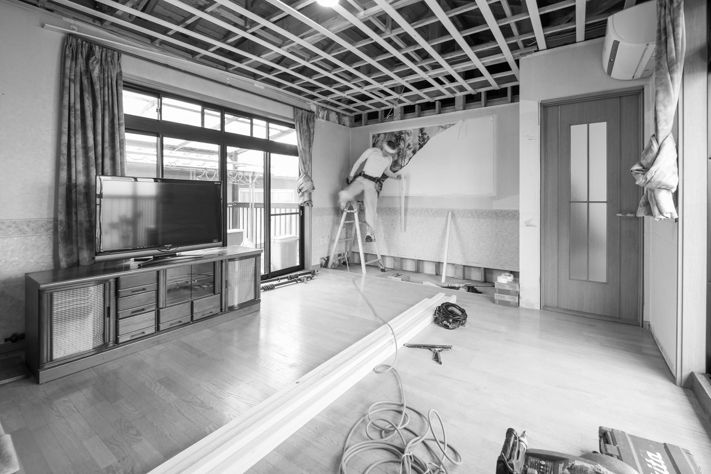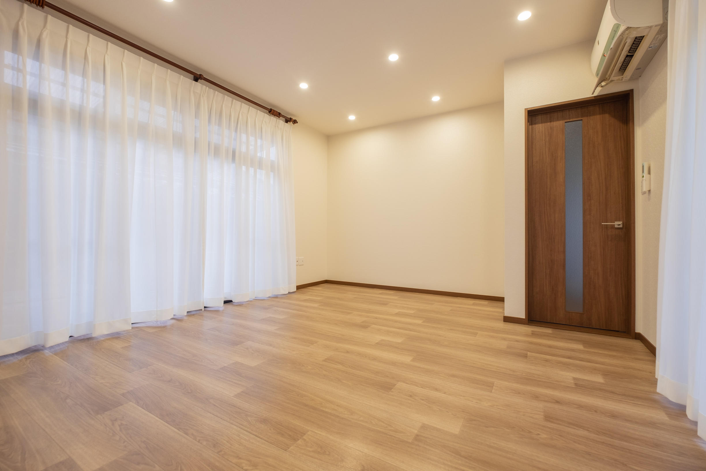 汚れて傷んでいた壁紙を張替え。天井には断熱材が入っていなかったために、新たに設置させていただきました。建具も空間に合うものへ交換。デザイン性もあがり快適に過ごせるリビング空間へ。