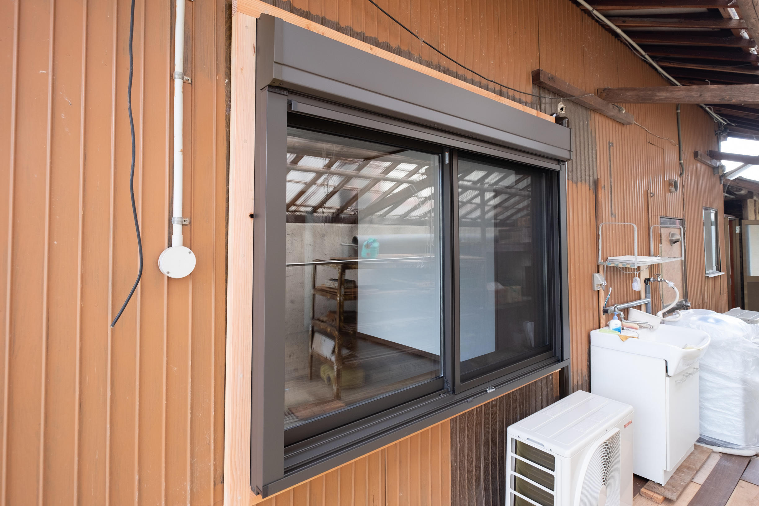 昔ながらの単板ガラスから複層ガラスへリフォーム。断熱効果があがり、さらにシャッター付で防犯性能もより高めることができました。