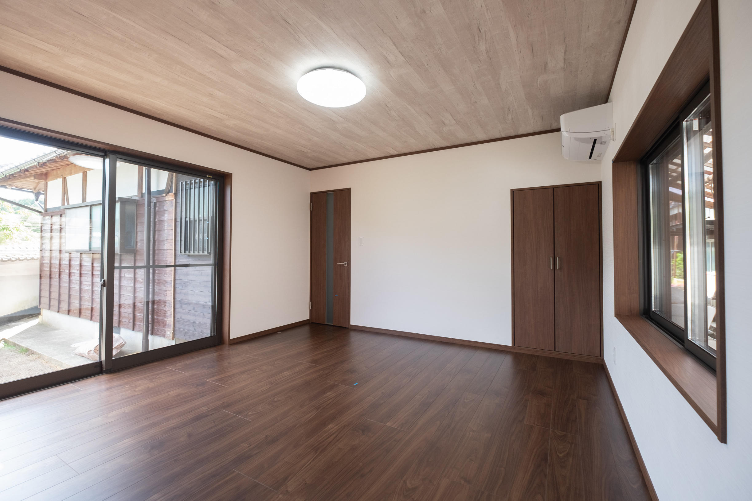 ご高齢になられた施主様が2階の寝室から1階へ引っ越ししたいというご希望で、畳の和室からフローリングの洋室への改装工事をさせて頂きました。屋根裏と床下には、断熱材をいれて心地よい寝室かわり、大変喜んで頂くことができました。