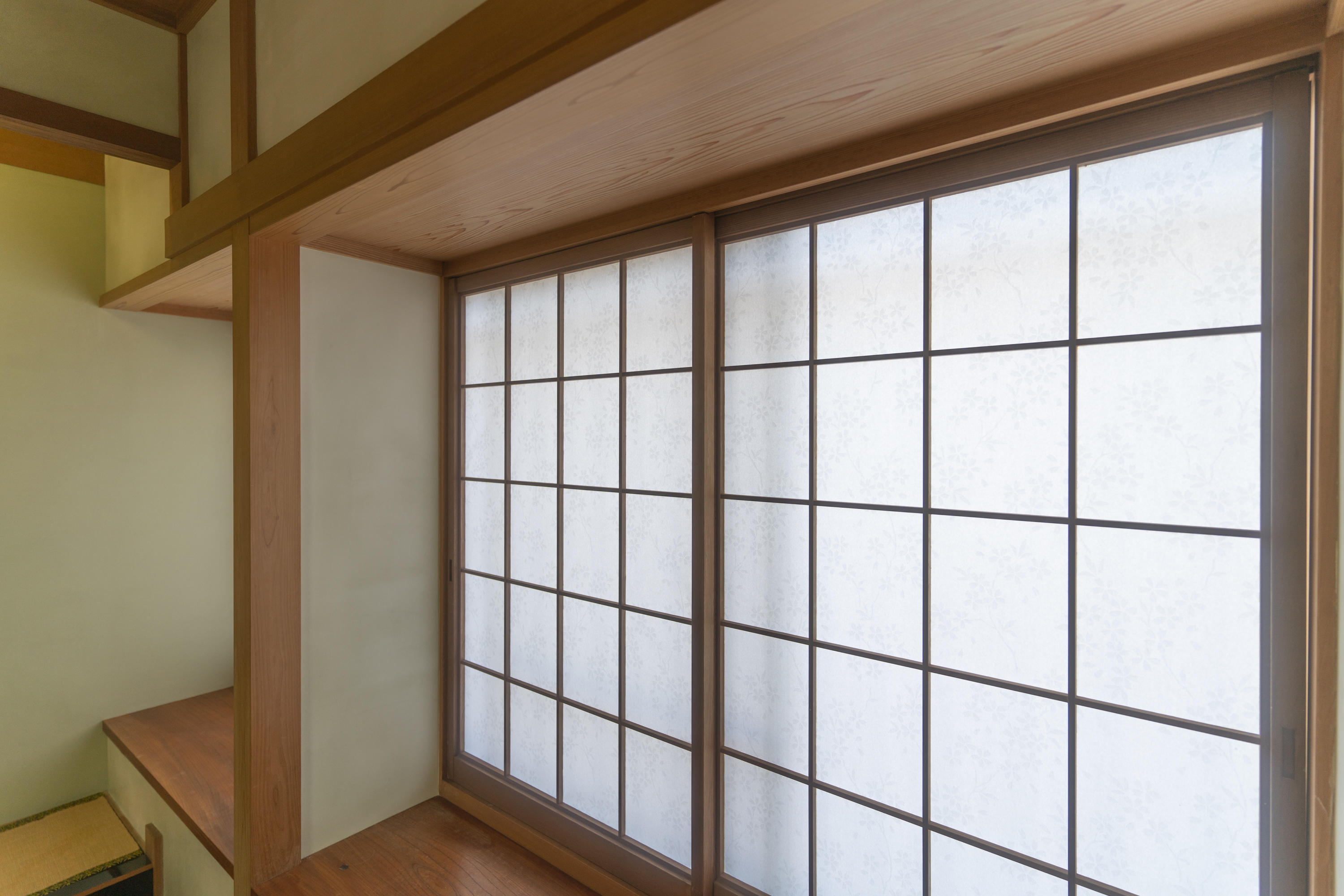 玄関ホール・廊下・和室の聚楽が経年による汚れ、ひび割れの症状があったため、左官による漆喰の仕上げをさせて頂きました。明るく生まれ変わった空間に施主様は、大変喜んで頂けました。