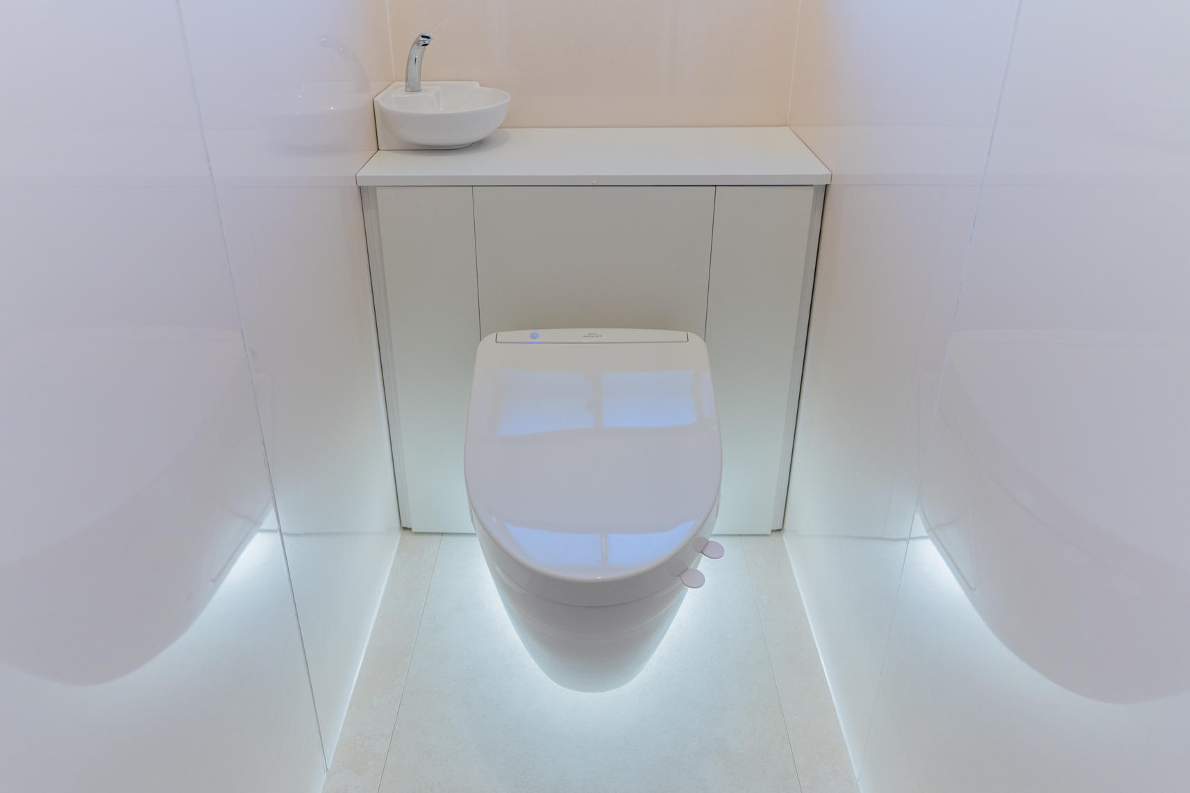 商品:TOTO「レストパルF」 床材:TOTO「ハイドロセラ・トイレフロアJ」 工事内容:既設トイレの老朽化のため、便器とウォシュレットの取替工事
