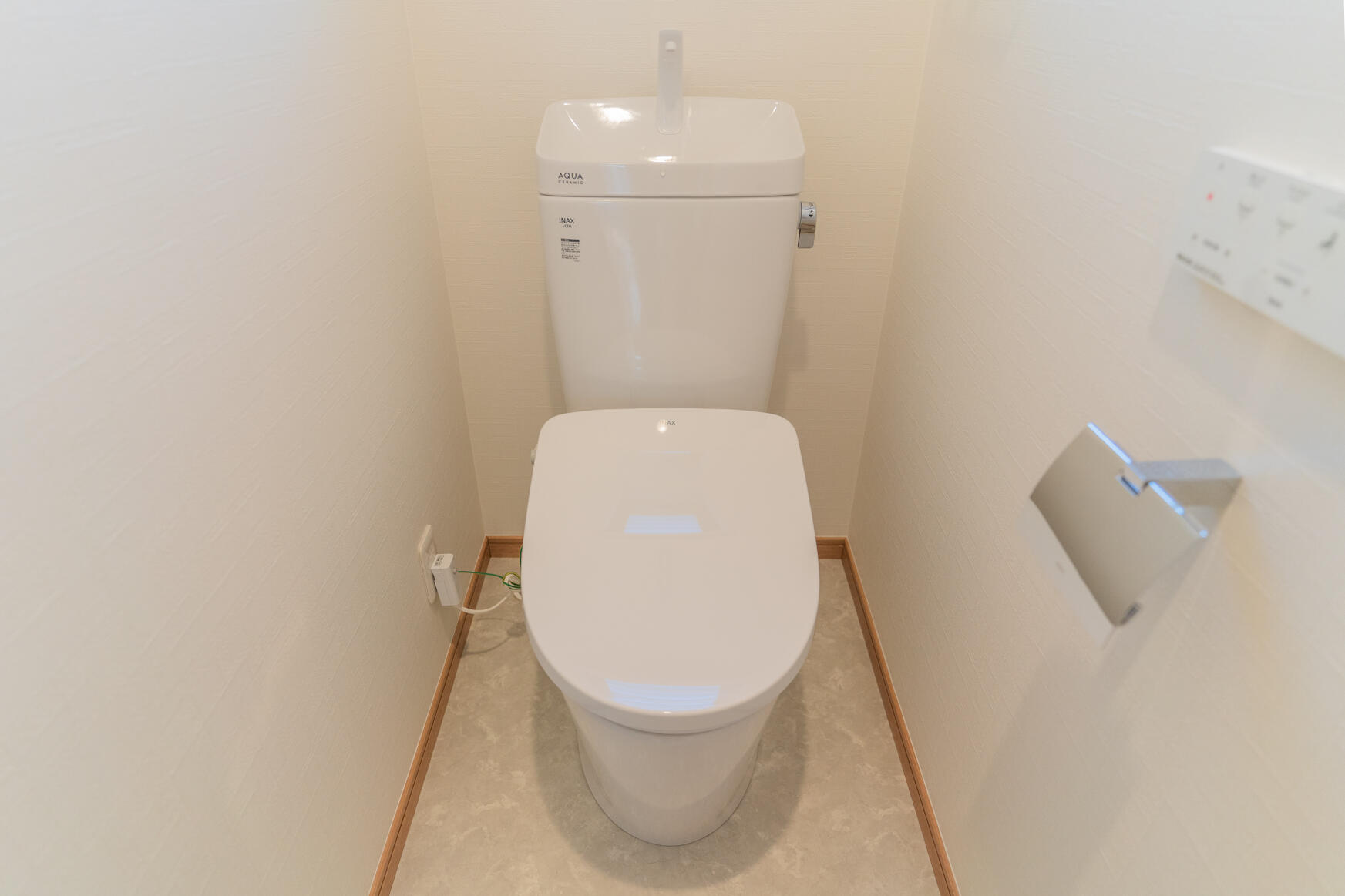 商品:LIXIL アメージュ便器・LIXIL シャワートイレ VA 工事内容:経年劣化によるトイレ交換・壁紙、床張替え工事