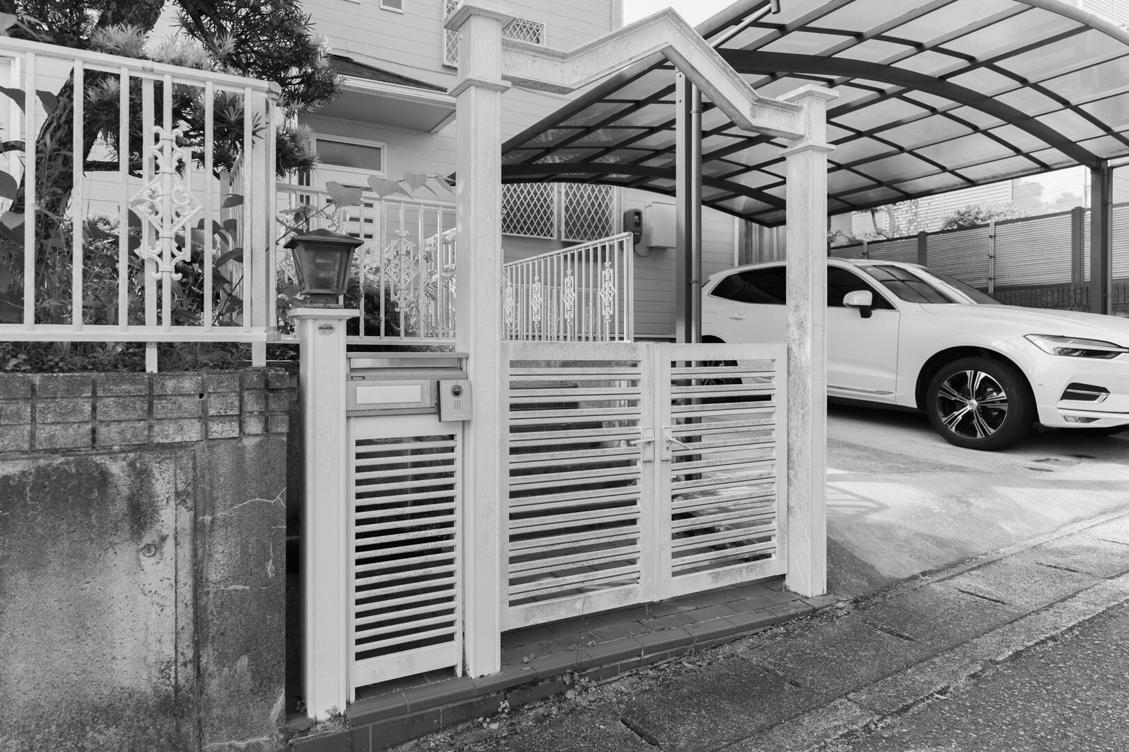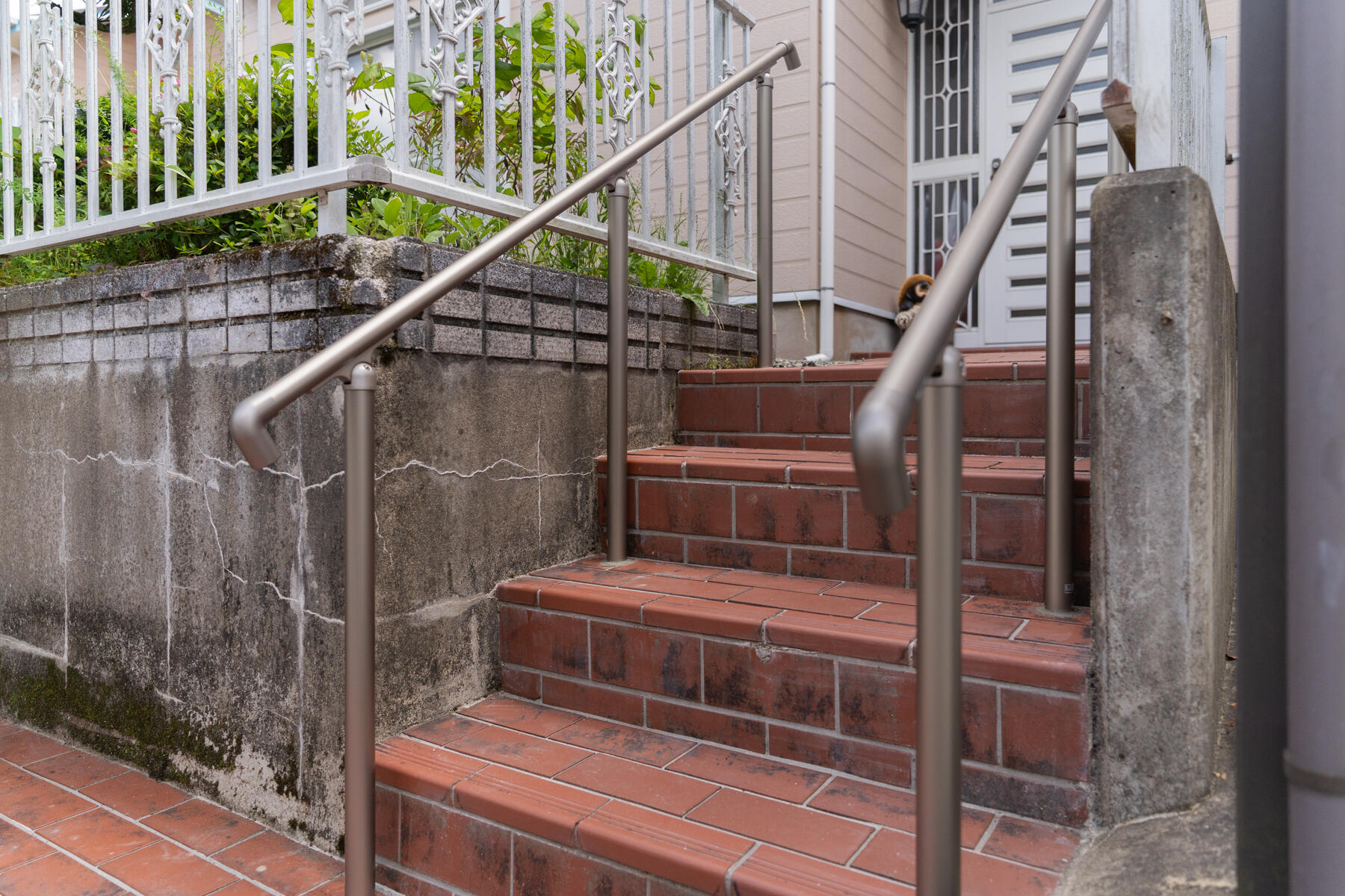 商品:LIXIL 機能門柱「ファンクションユニット アクシィ2型」、三協アルミ 補助手すり「エトランポS」 工事内容:機能門柱、補助手すりの設置工事