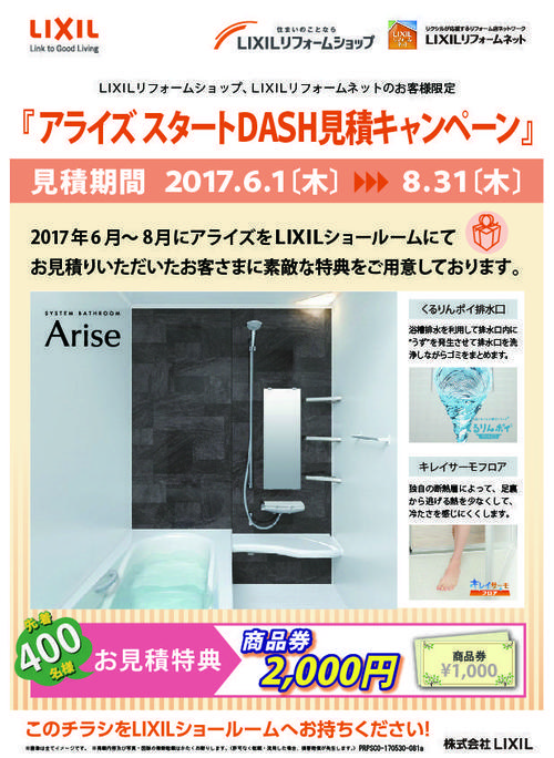 ※本チラシをLIXILショールームにお持ちいただき、アライズをお見積もりいただいた方限定。
