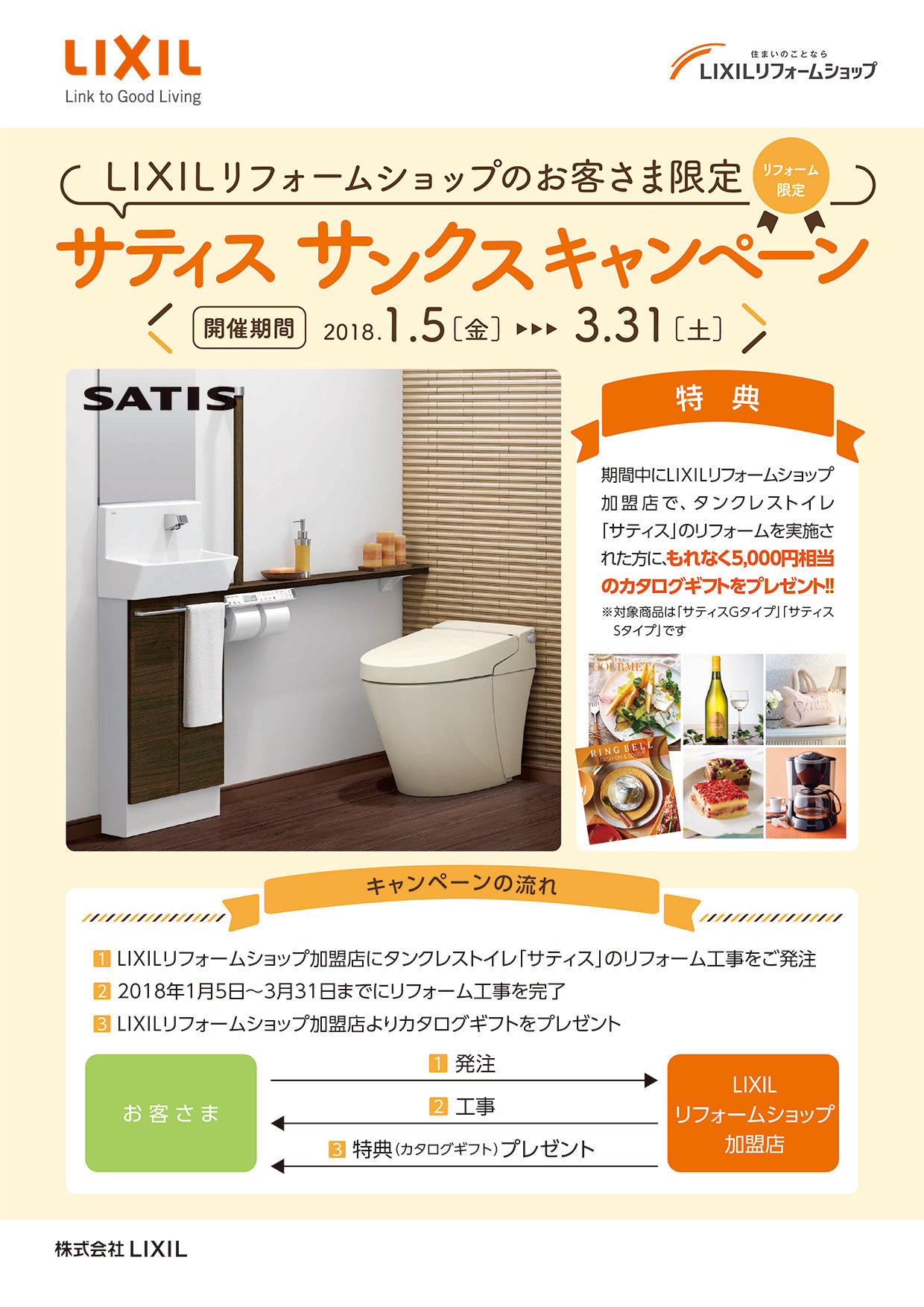 期間中にタンクレストイレ「サティス」のリフォームを実施された方に、