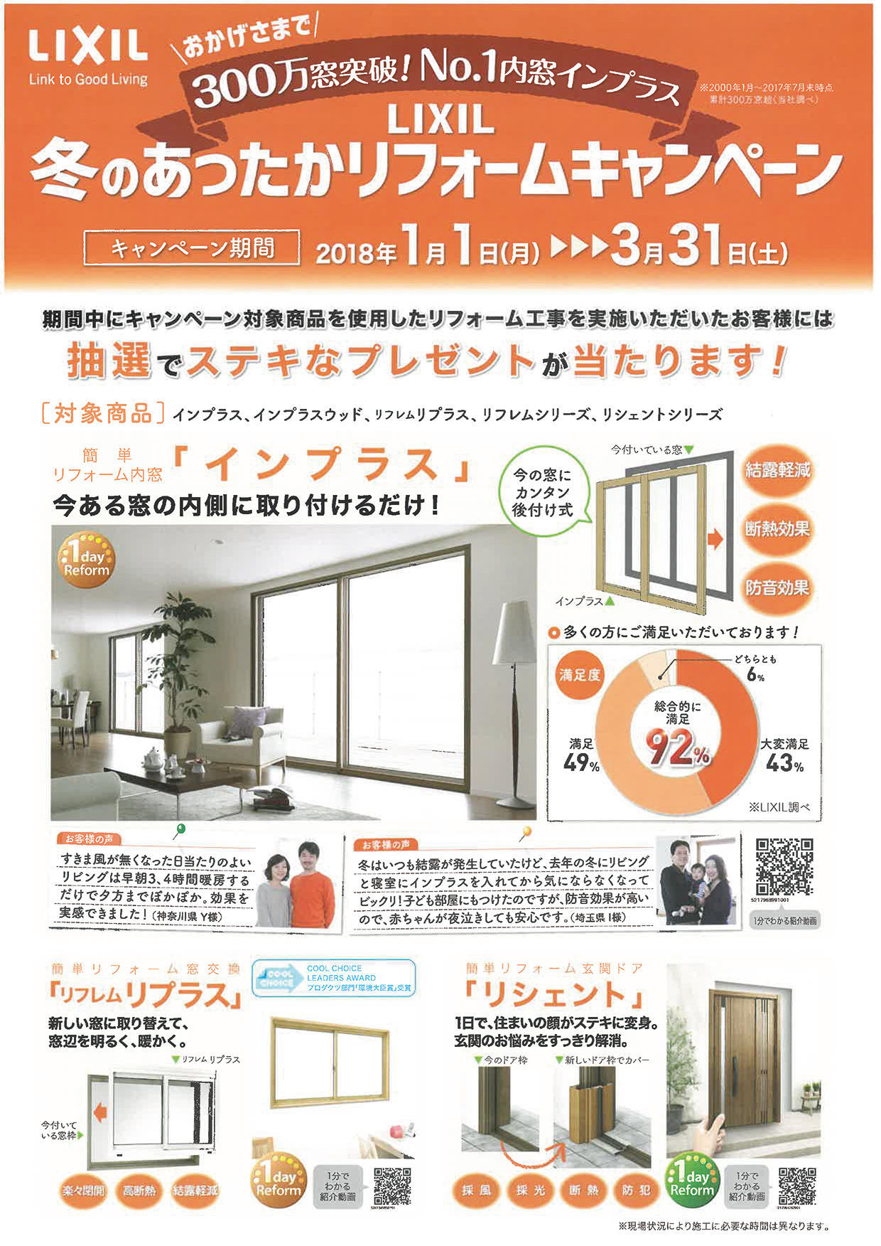 期間中にキャンペーン対象商品を使用したリフォーム工事を実施いただいたお客様には