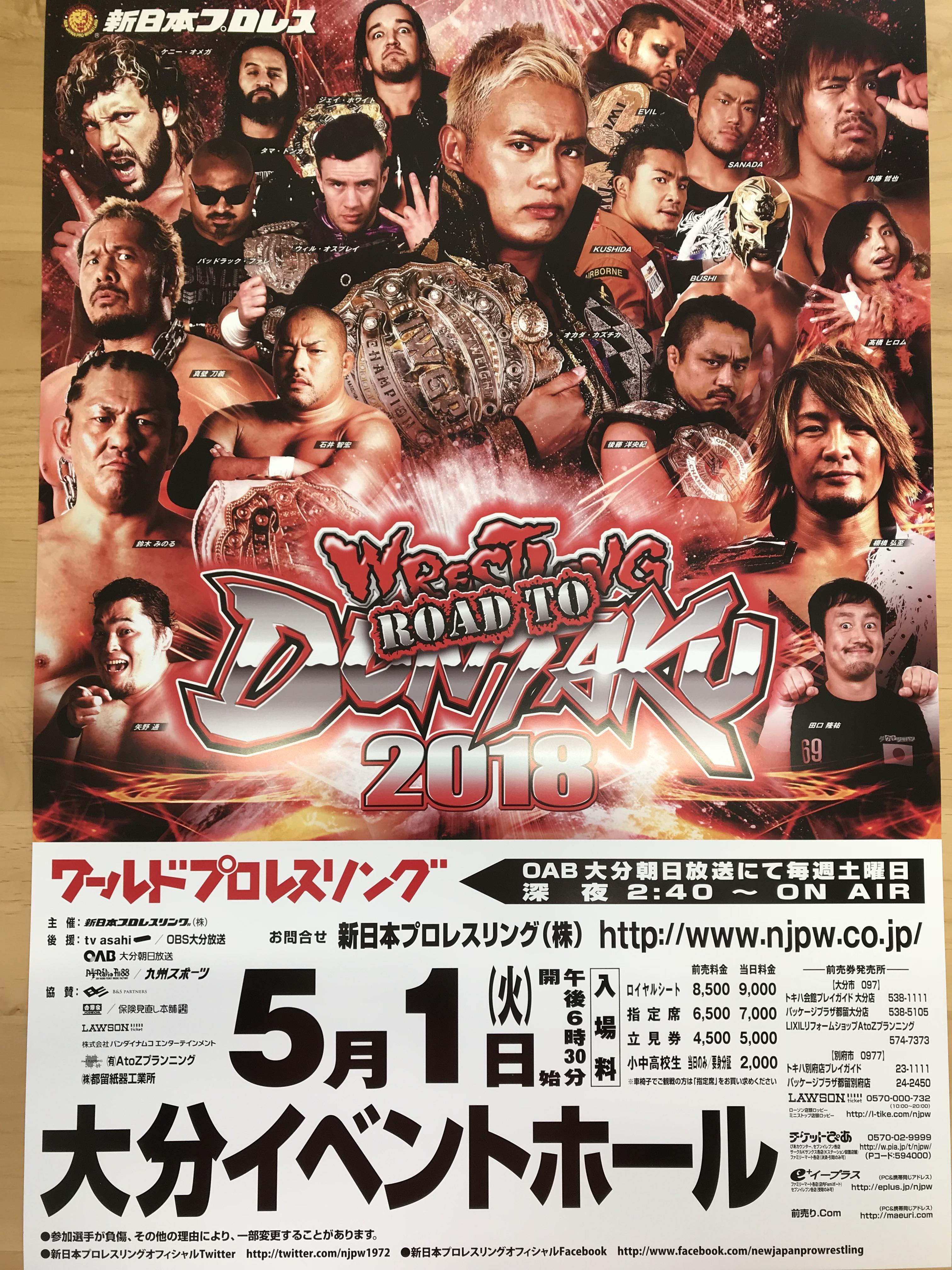 当社では来月5月1日に行われる新日本プロレス大分大会のチケットを販売しています。