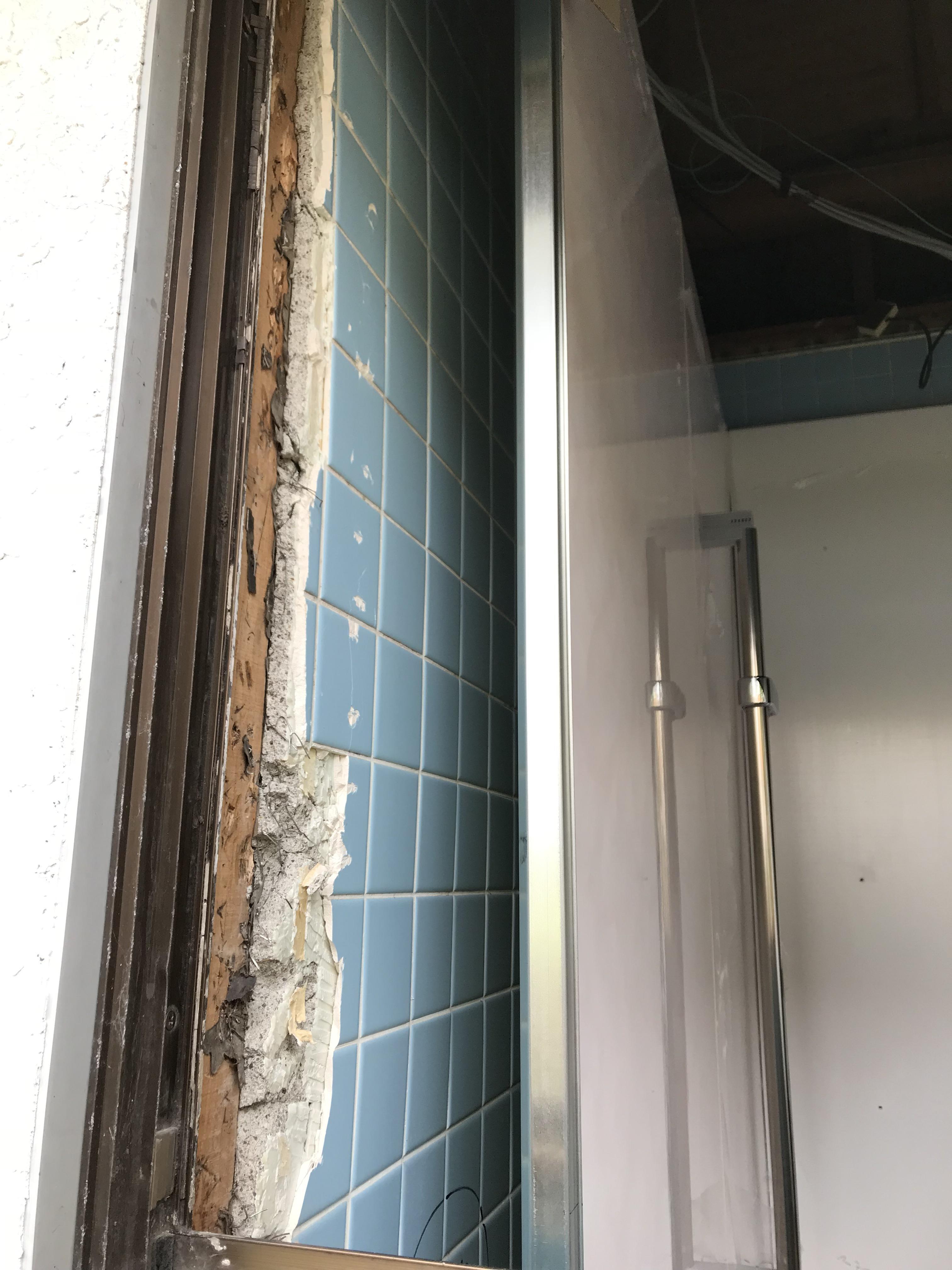今まで使用していた浴室のタイルの内側に新しいパネルが設置されていますね(^^♪