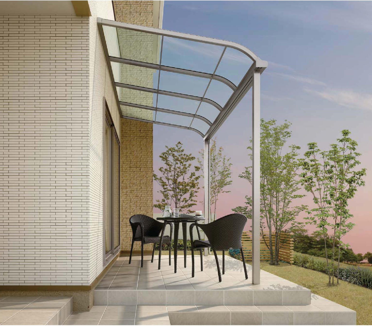 「ルーフタイプ」は勝手口などの出入り口やバルコニーなどにも設置でき、様々な用途に使用されます。また「スピーネ」は台形などの敷地にも対応しているので敷地ギリギリまで設置可能となっています。