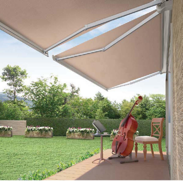 「彩風」は日差しを遮りながら、お洒落な空間を創り出します。まずは日差しをコントロールし冷房費を約1/3に抑えることができます。冷房費は標準の窓ガラス(3mmガラス)に何もつけていない時のクーラー稼働率を100%、室内付けブラインドまたはカーテン使用でクーラー稼働率74%、オーニング使用時のクーラー稼働率は33%に。さらに熱遮断キャンバスで効果が高まります。LIXILのオーニングに使われているキャンバスはすべて有害な"紫外線"をほぼ100%カットし居室の日焼け対策にも効果大。
