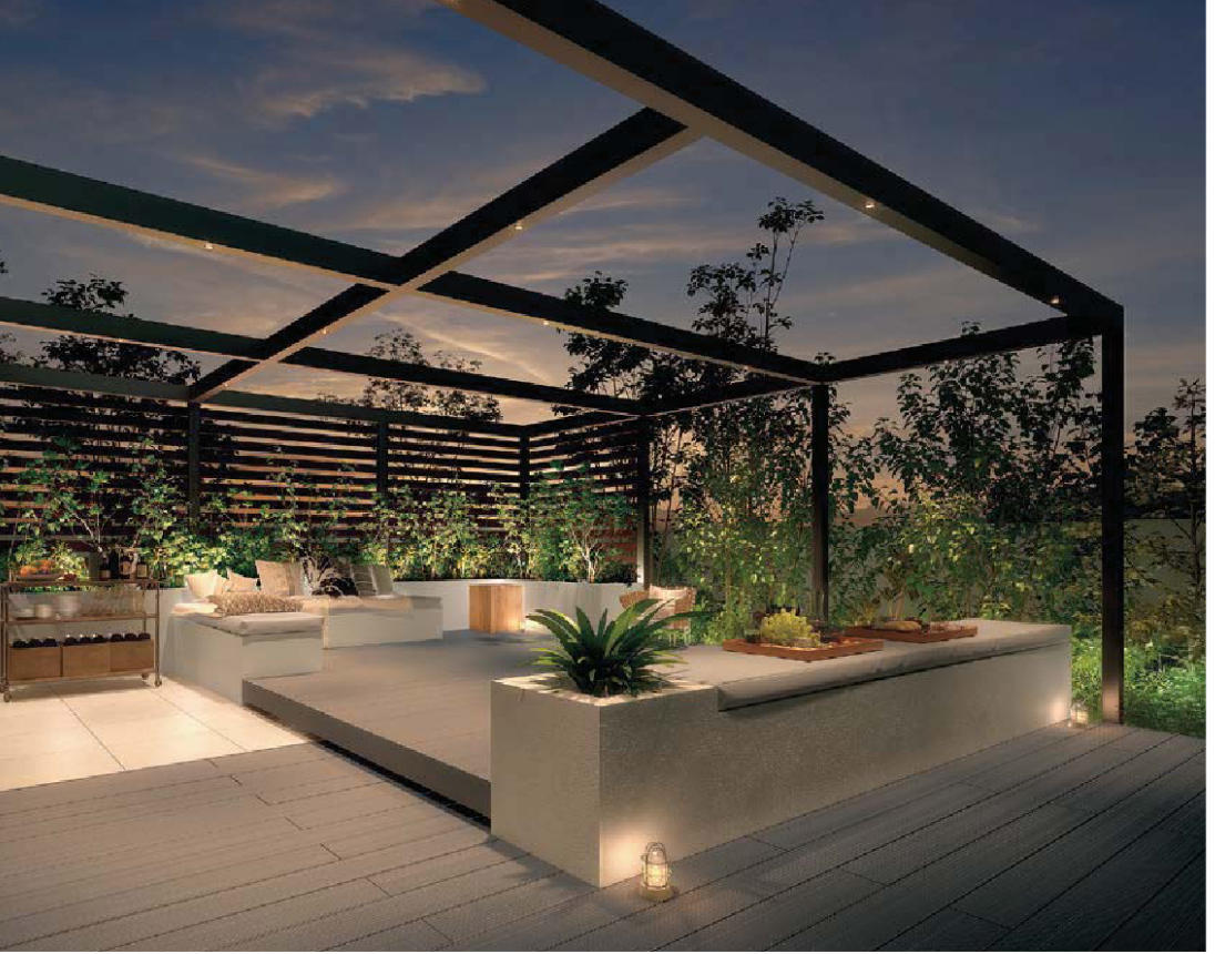 「プラスG」は"間取り"の発想を取り入れ新たな住空間を創造する商品になります。敷地全体を住まいと考え、"間取り"に着目して誕生した「プラスG」。デザイン、居心地、機能性を兼ね備えた住空間として、エクステリアに新たな命が吹き込まれます。敷地を"間取る"ための「プラスG」アイテムの紹介をします。間取りの骨組みをつくる「Gフレーム」、間仕切りなどに用いる「Gスクリーン」、屋根としての役割をもつ「Gルーフ