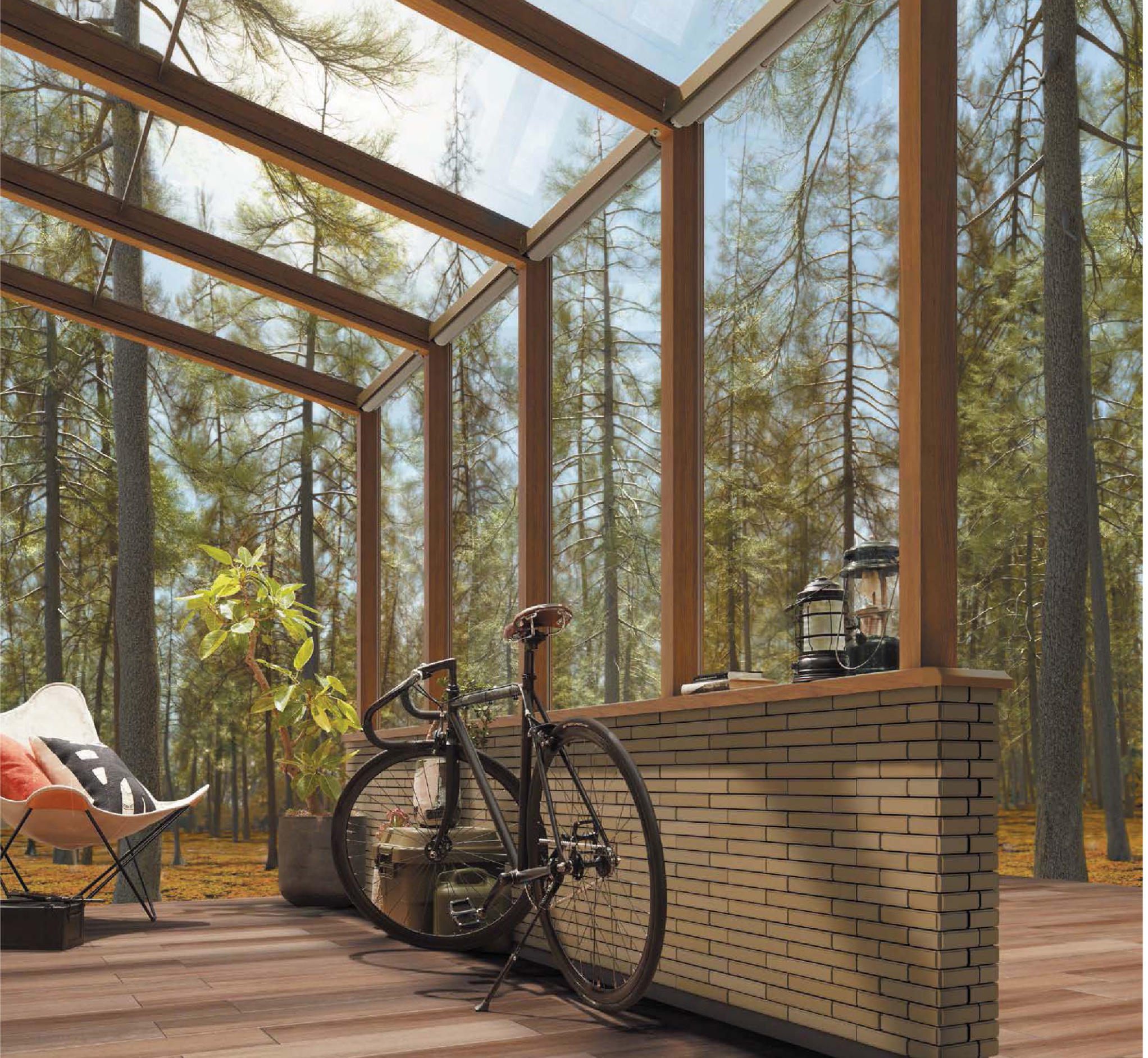 「ガーデンルームタイプ」と「サイドスルータイプ」で使用する前面フィックスパネルには「フルフィックス仕様」「中桟付き仕様」「前面上げ下げ窓仕様」「可動ルーバー」をご用意。さらに「腰壁タイプ」・「L字腰壁タイプ」には「フィックス仕様」「前面上げ下げ窓仕様」をご用意しています。
