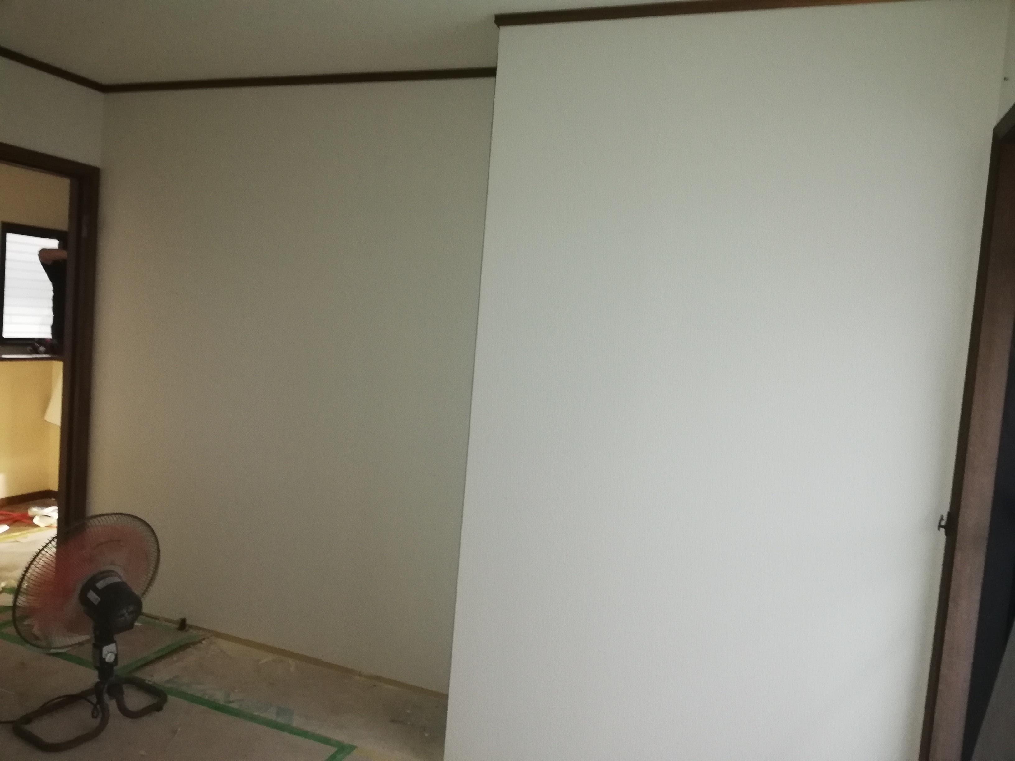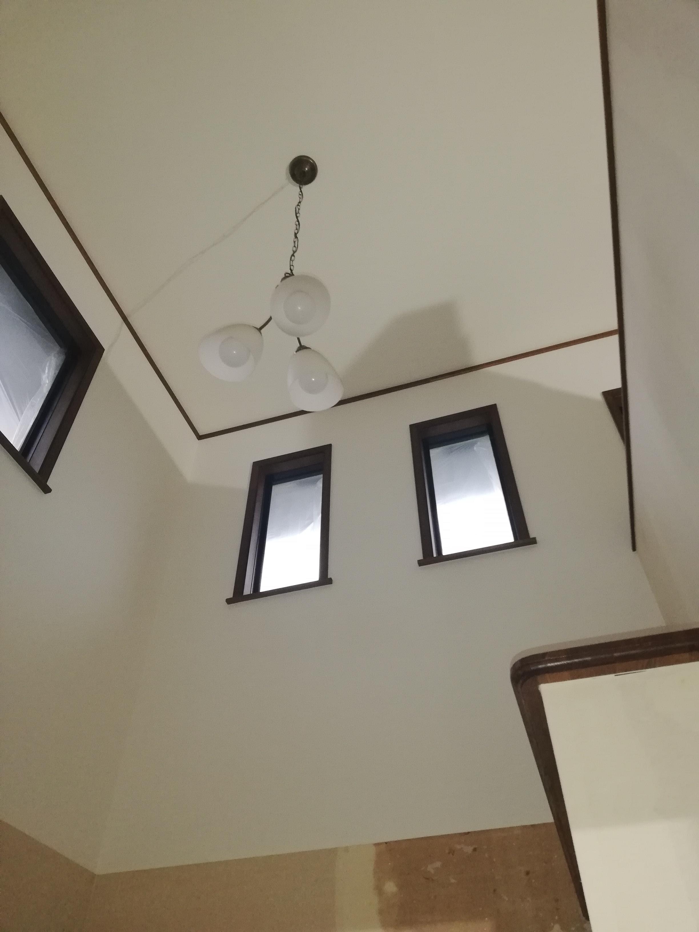今回は内装クロス張りの状況を報告します。現在2階フロアまで完了しています。