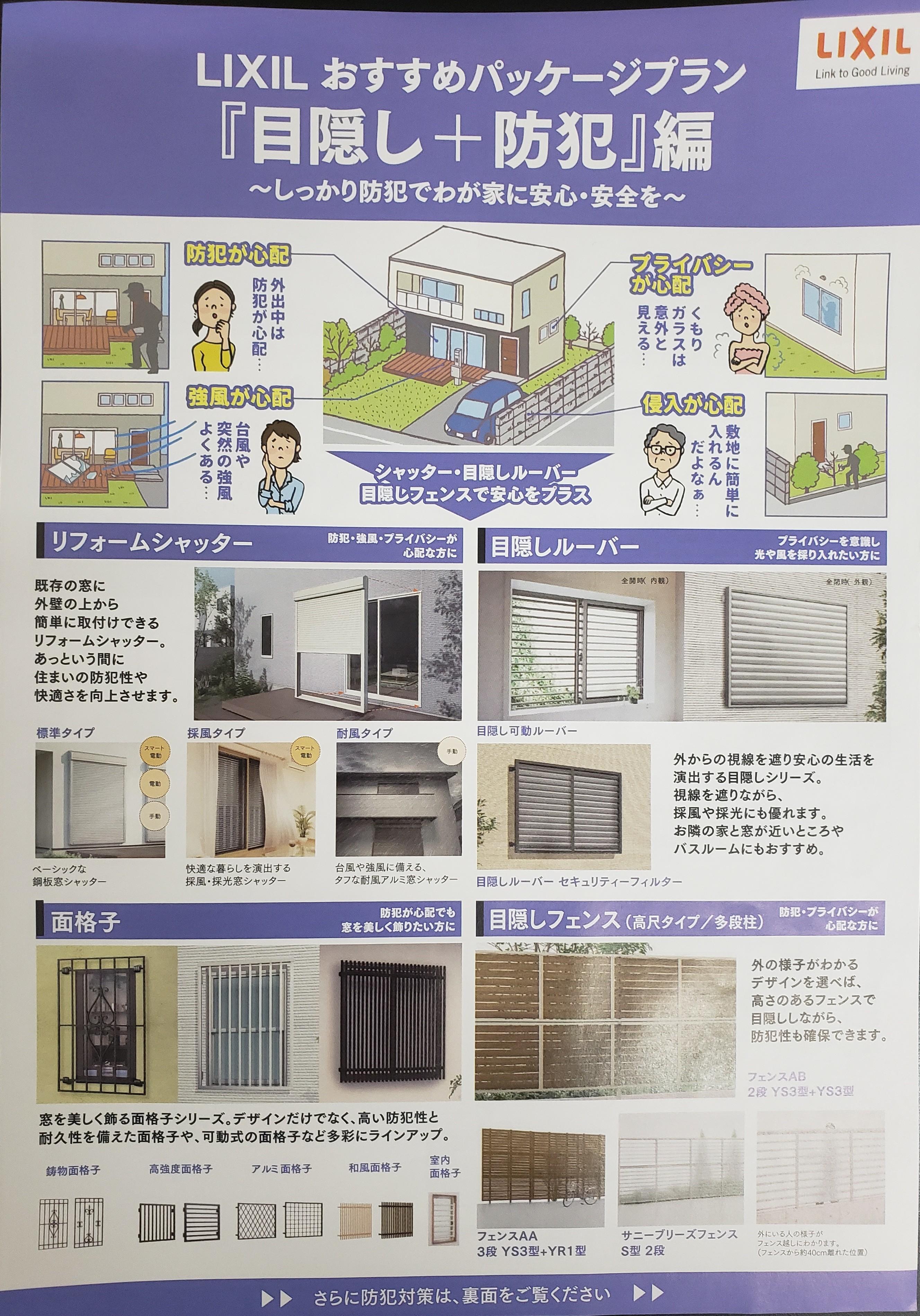 防犯・強風には「リフォームシャッター」「面格子」、プライバシー、侵入には「目隠しルーバー」「目隠しフェンス」がオススメです。