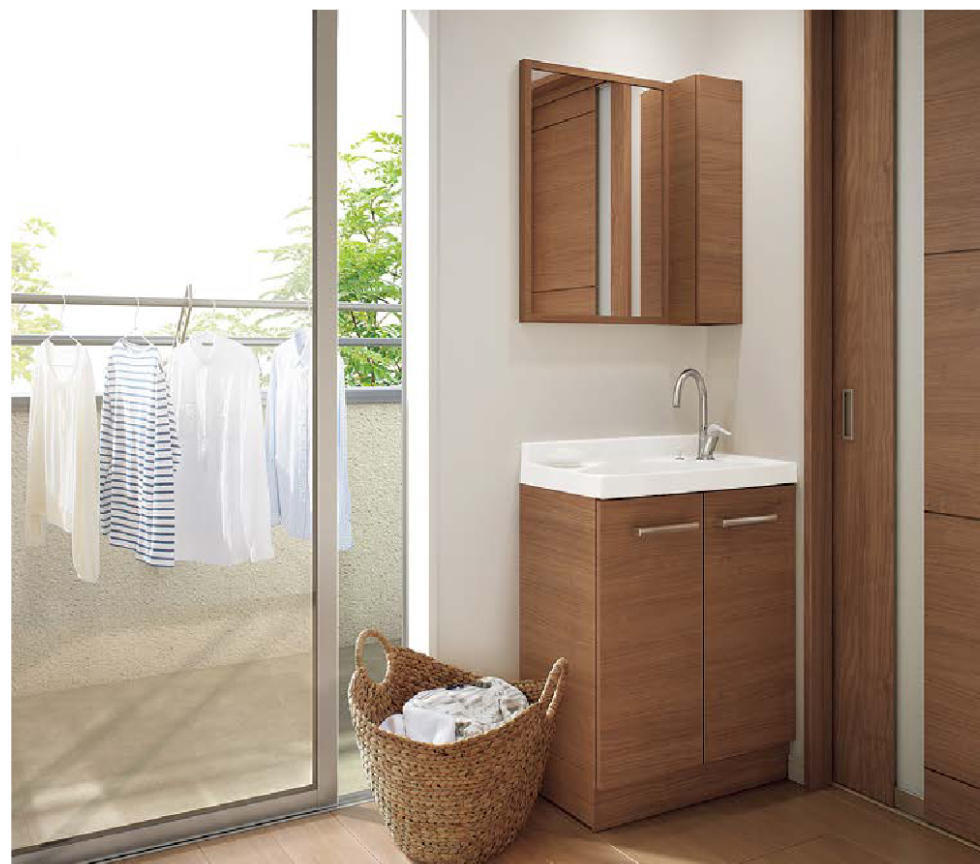 「省スペース」「デザイン」「お手入れラクラク」と三拍子そろった洗面台。
