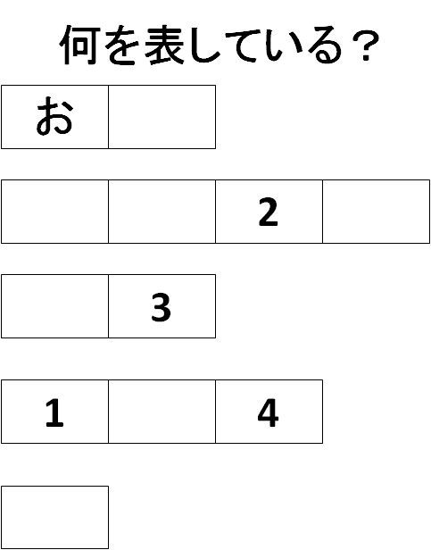 ヒント1.四角を埋めてみましょう。ぜんぶで5つあります